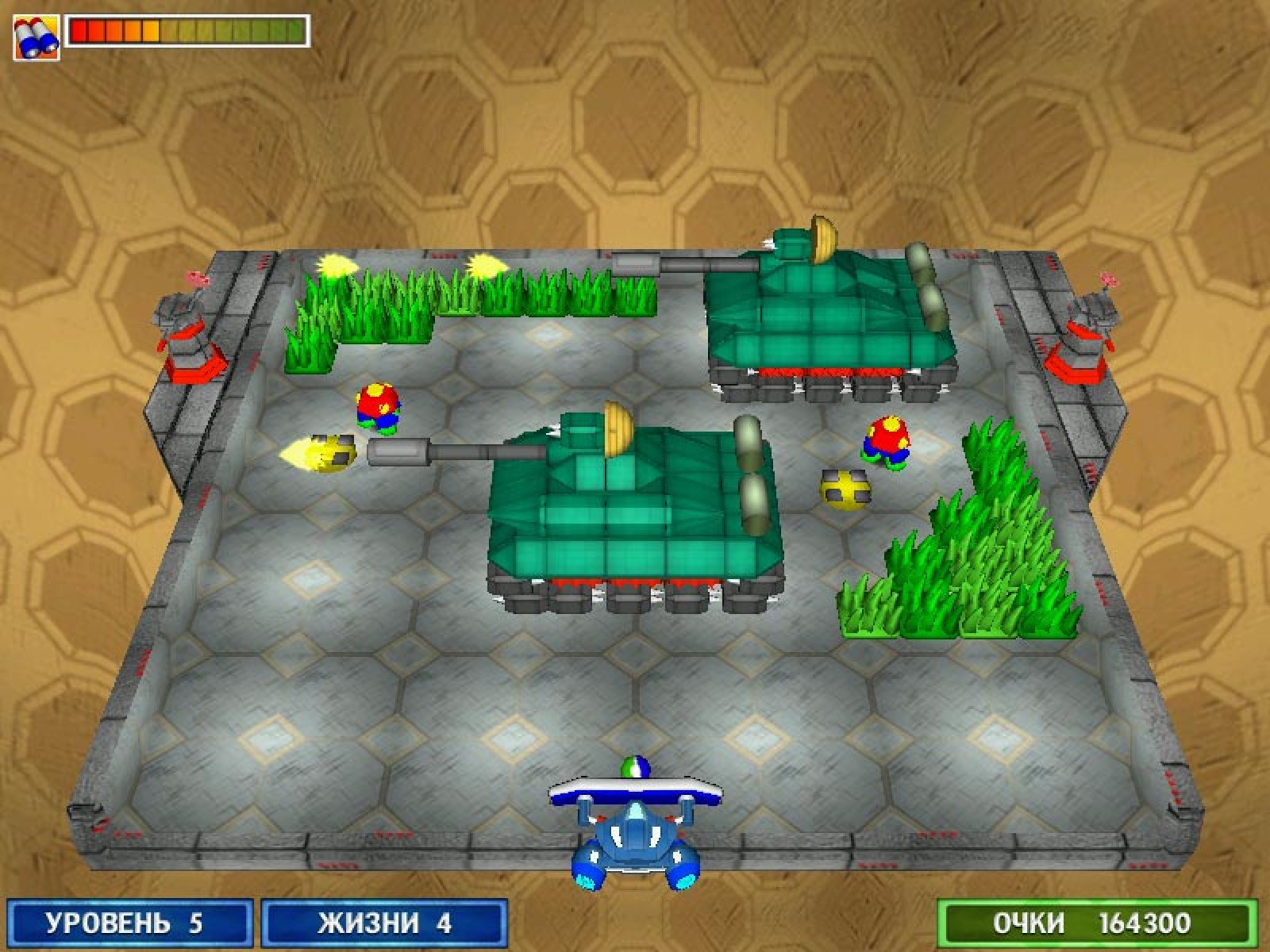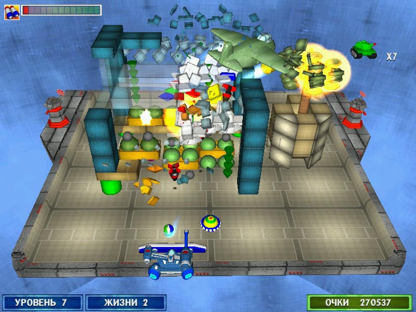 Эта увлекательная аркада повествует о новых приключениях пилота небольшого боевого скутера. Ему предстоит расчистить сто парящих в пространстве игровых платформ-уровней, используя небольшой исследовательский зонд, очень похожий на обычный мячик. Справиться с этой задачей вам помогут многочисленные бонусы, которые выпадают из разбитых блоков. С их помощью можно не только менять свойства или траекторию движения зонда, но даже вызывать подмогу — звено бомбардировщиков, которые проутюжат игровое поле мощными фугасами. Эта чрезвычайно увлекательная игра обязательно понравится всем без исключения любителям классических аркад, которые с помощью самых современных компьютерных технологий стали еще красивее и динамичнее.