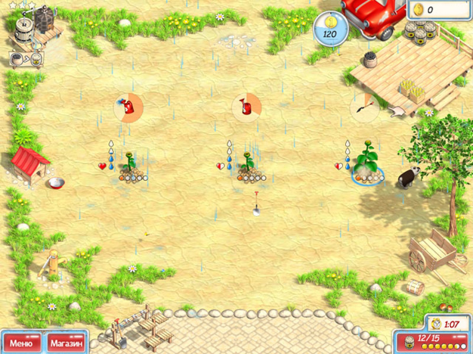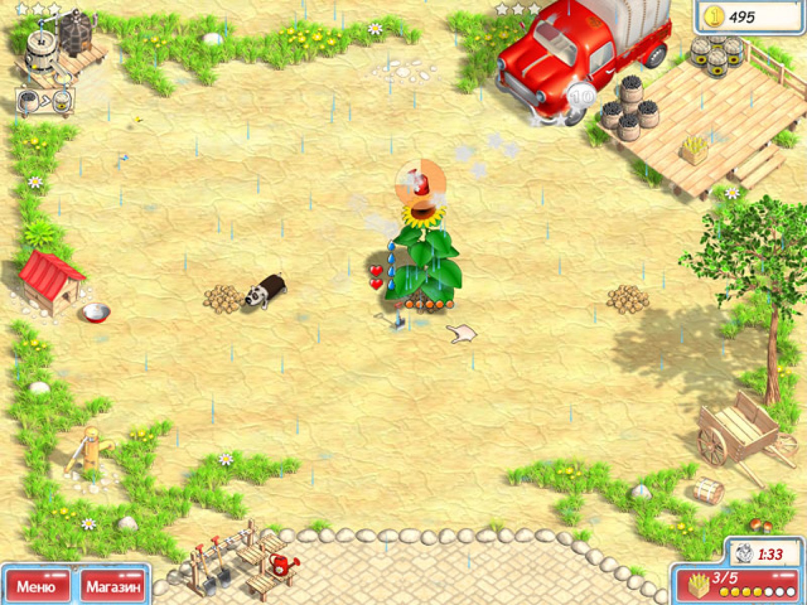 Красочная игра с сельскохозяйственным уклоном, в которой вы будете управлять собственной фермой. Каждая грядка требует особого подхода: кукурузу необходимо чаще окапывать, острому перцу подрезать лишние побеги, помидор часто болеет, а огурцы нужно как можно чаще поливать. Зачастую пройти очередной уровень не так-то просто. Попробуйте одновременно ухаживать за пятью разными растениями, собирать урожай, пытаясь при этом наладить производство кетчупа, маринованных огурцов и подсолнечного масла! И не забудьте про необходимость отгонять с поля вредных овец, норовящих попробовать на зуб плоды ваших трудов. Игру выделяет по-настоящему яркая и солнечная графика, забавное музыкальное сопровождение и увлекательный игровой процесс. При должном подходе вы соберете богатый урожай удовольствия, которым сможете распорядиться так, как вам угодно. Игра, поверьте, того стоит.