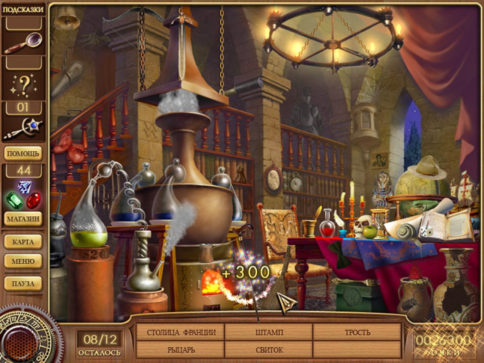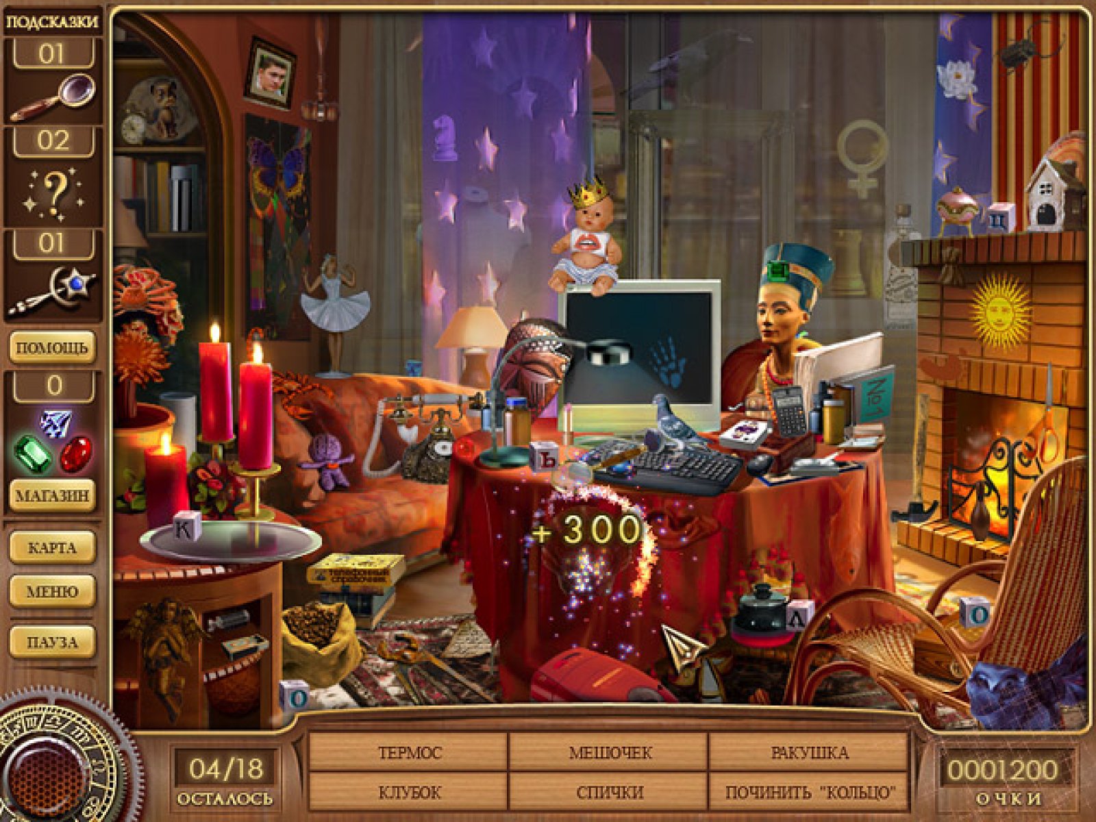 Эта удивительная история рассказывает о приключениях начинающего мага по имени Кассандра. К ней приходит женщина, которая представляется как Виолетта Смит. У нее пропал брат и с помощью Кассандры она очень хочет его найти. Кассандра соглашается помочь в поисках, но так как она только начинающий маг, ей необходимо воспользоваться магическим кольцом, которое досталось ей от бабушки. Отыскав шкатулку, в которой должно лежать это кольцо, Кассандра обнаруживает, что оно исчезло. А без кольца она не сможет ничего сделать. Виолетта соглашается подождать, пока кольцо не отыщется. И Кассандра начинает поиски. Игра «Путешествие Кассандры» представляет собой удивительную историю о приключениях начинающего мага. Созданная в лучших традициях жанра «я ищу», она переносит вас в мир гаданий, предсказаний и общений с духами. Вам придется искать улики, указывающие на похитителя кольца, сравнивать фотографии, копаться в старых магических предметах. В этом вам будет помогать дух Нострадамуса, который пришел на помощь Кассандре. И только с его помощью вы сможете разобраться во всей этой истории и найти магическое кольцо. Еще одной отличительной особенностью этой игры являются интерактивные фокусы, которые показывают Нострадамус и сама Кассандра, а так же комната гаданий, в которую можно зайти в любой момент игры. Три варианта гаданий, которые открываются по мере прохождения игры, помогут отвлечься от повседневных забот и перенестись в мир мистики и вошебства. Отличная игра «Путешествие Кассандры» понравится всем любителям жанра «я ищу», а оригинальные паззлы и головоломки приведут в восторг даже самых опытных игроков. Так что смелей берите в руки «мышь» и отправляйтесь на поиски магического кольца Кассандры.