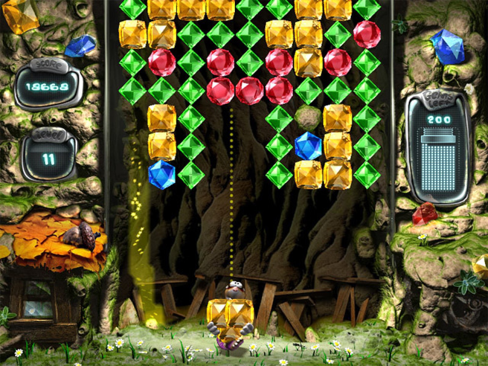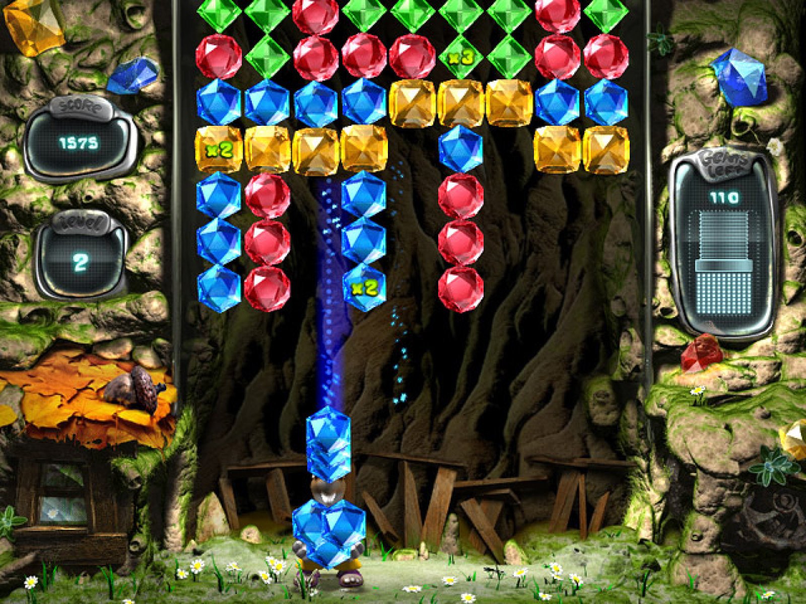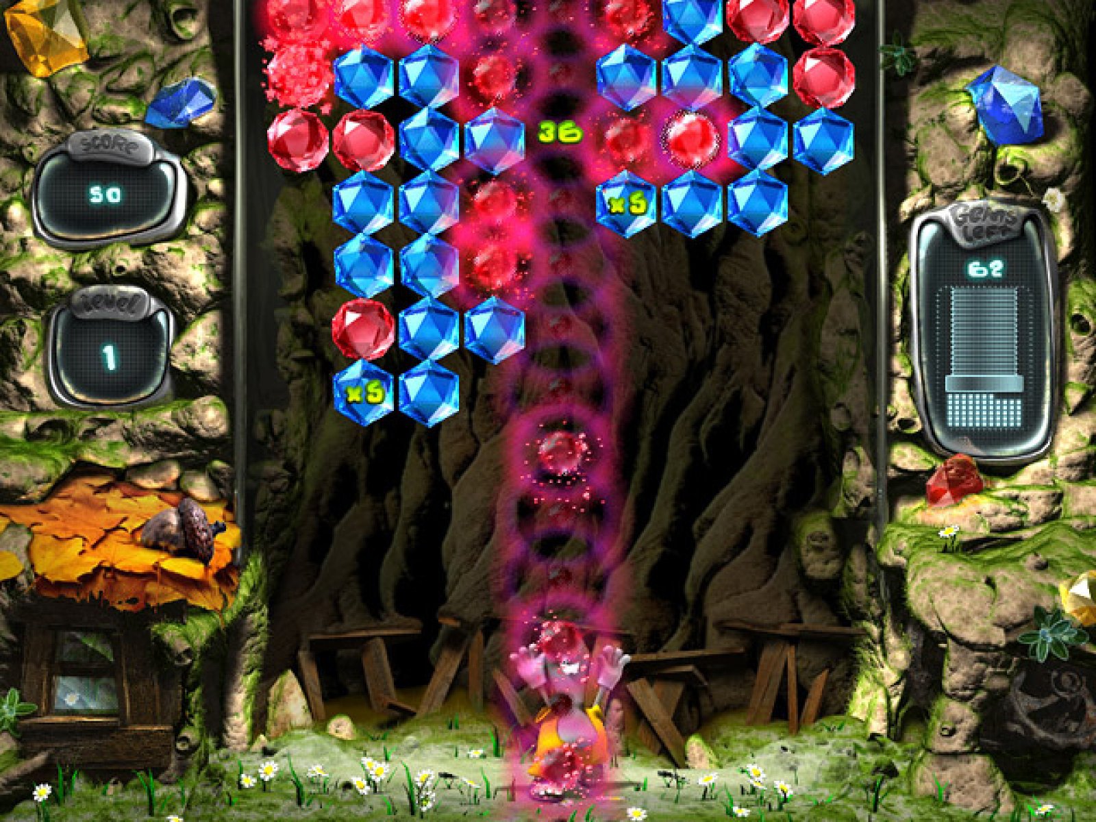 В этой увлекательной аркаде вам предстоит побывать в гостях у крота Джимми и спасти его уютное жилище от падающих самоцветов. Собирайте камни одного цвета и разбивайте их друг о друга. Чем больше бриллиантов разобьется за один раз, тем больше очков вы заработаете. Игра легка и понятна в освоении, она обязательно понравится как взрослому, так и ребенку. Помимо увлекательного игрового процесса и красочной анимации Бриллиантовый бум обладает рядом других достоинств, которые не позволят вам оторваться от игры в течение долгого времени. Игра предоставляет на выбор три уровня сложности: нормальный для начинающих, Сложный для опытных, и Безумный для профессиональных игроков. Выбирайте подходящий уровень и вперед! Несомненное достоинство игры в том, что успех зависит не только от реакции, но и от сообразительности.