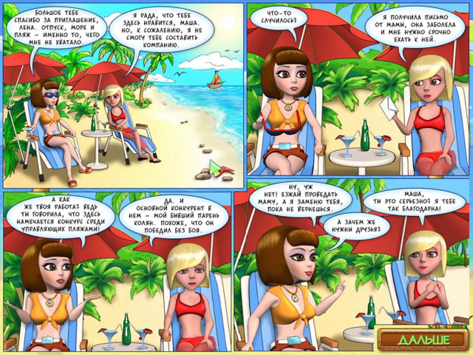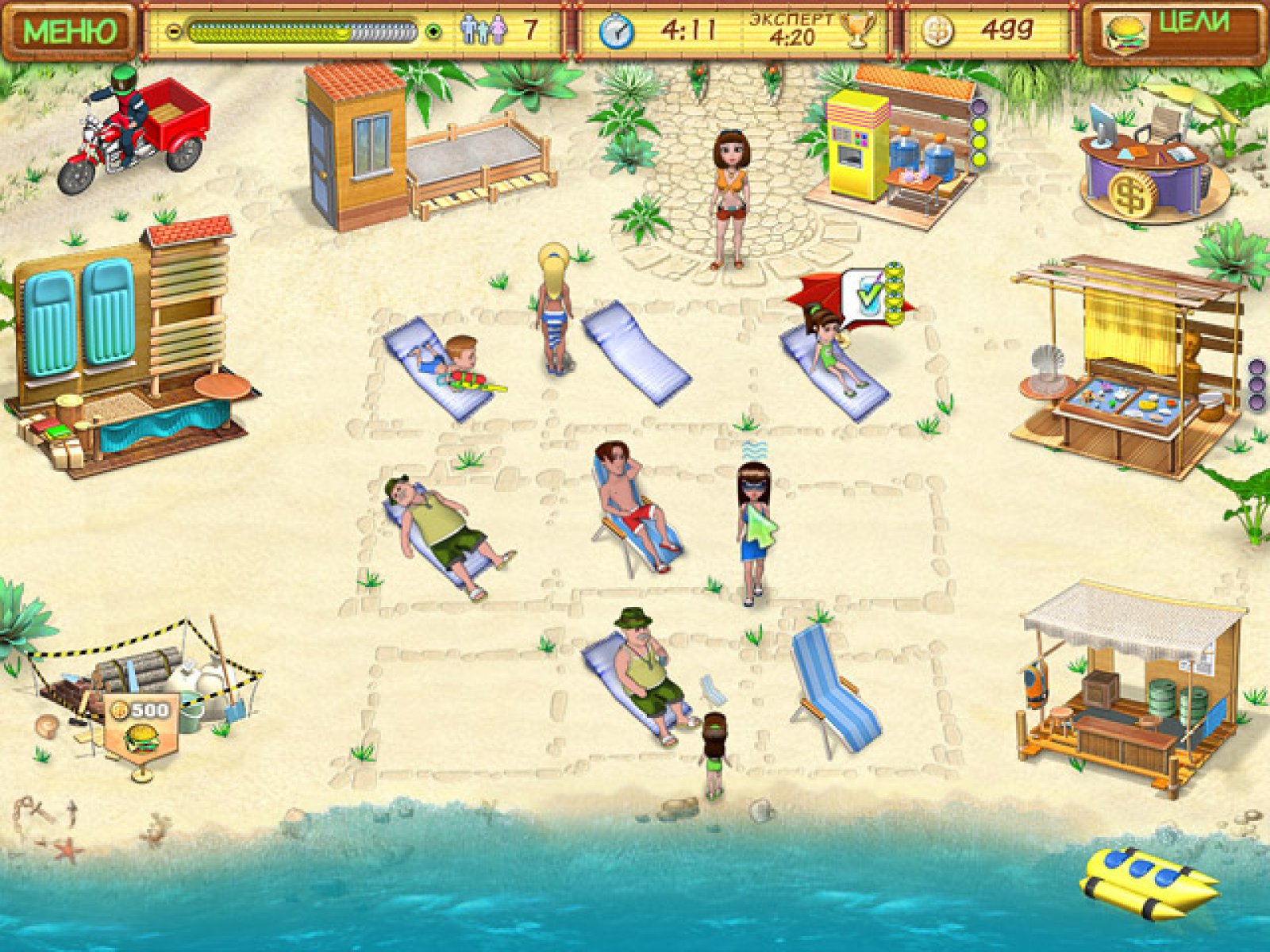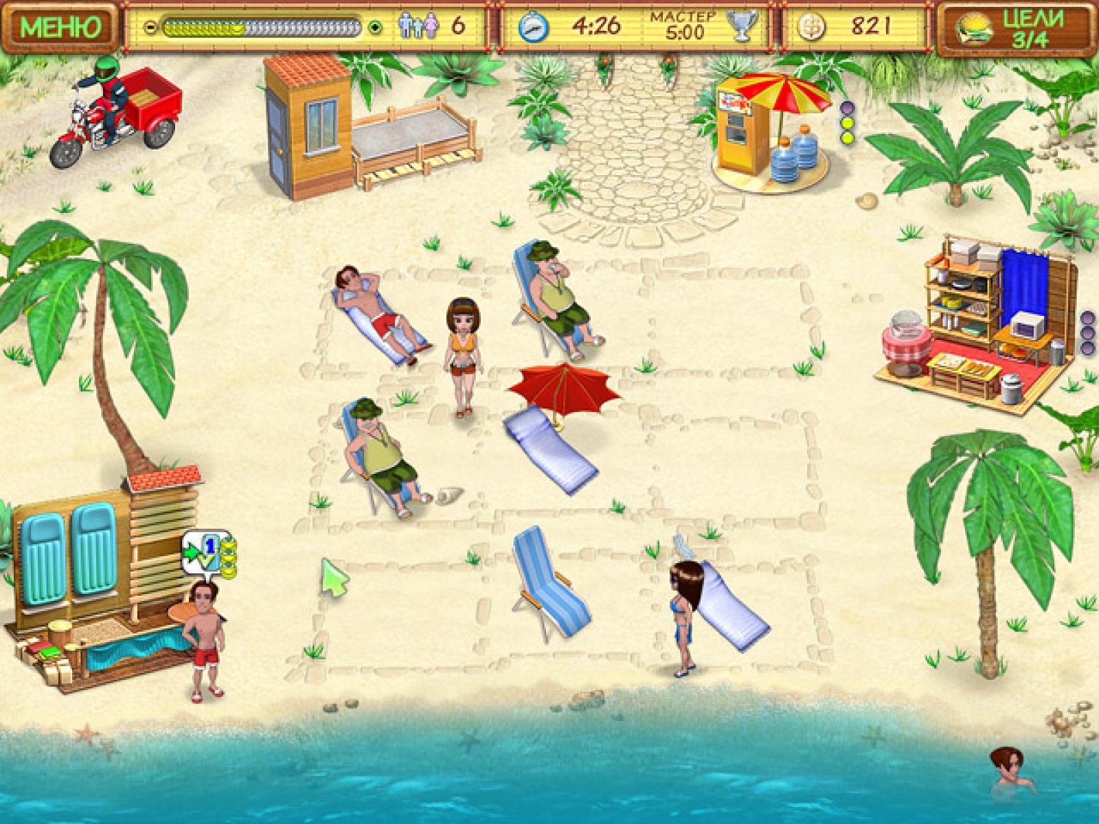 В этой интересной и увлекательной игре вам предстоит не только освоить азы пляжного бизнеса, но изрядно постараться в попытке набрать рейтинг выше, чем у главного соперника. Следите за тем, чтобы отдыхающие были довольны, приносите им вовремя прохладительные напитки, бутерброды, сдавайте в прокат надувные матрасы и не забудьте про зонтики, защищающие от солнца. Одной из отличительных особенностей игры «Пляжный переполох» является большое количество веселых мини-игр. Составление бутербродов, выбор сувениров и даже простое наполнение стакана водой превращается в увлекательнейший набор действий, оторваться от которого с каждым разом все сложнее. Добавьте ко всему этому яркую графику, забавных персонажей и антураж песчаного пляжа под южным солнцем — и вы получите не только отличную игру, но и возможность побывать в отпуске, не вставая из-за компьютера.