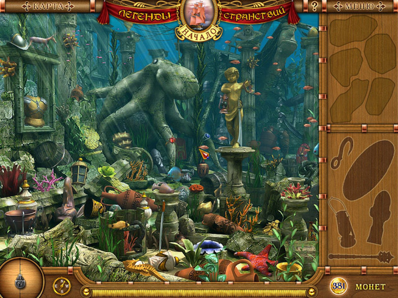 "Легенды Странствий" — захватывающая история о морских путешествиях, настоящей любви и несметных пиратских сокровищах. Вам предстоит пережить страшное кораблекрушение и отыскать потерянные вещи команды: легендарную карту рулевого Рутгера, подзорную трубу дозорного Хикару, страшную пушку бомбардира Черного Пса, волшебный горшок кока Дианы, игральные кости хмурого боцмана Хенка и многое другое... В этом нелегком деле вам поможет хрустальный шар, медный компас, твердая вера в свою счастливую звезду и попутный ветер.