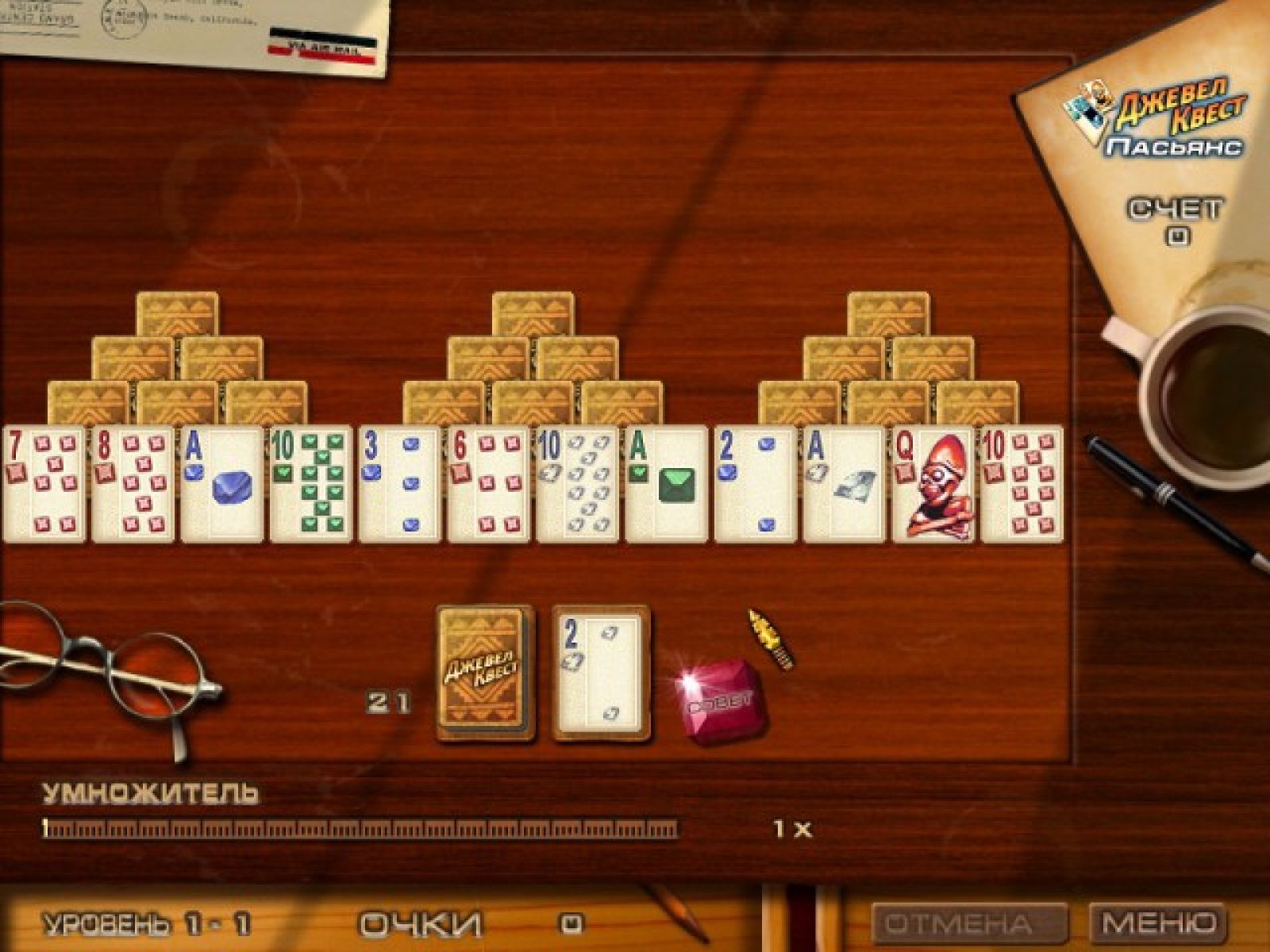 На каждом уровне этой необычной карточной игры с элементами логической аркады вас ждет пасьянс причудливой формы. Большинство карт лежат рубашкой вверх и, вдобавок, они заблокированы открытыми картами. Ваша задача — разблокировать все карты и переместить их в Базовую колоду, которая располагается в нижней части экрана. За удачно сыгранные карты вы будете получать драгоценные камни. Они потребуются для второго раунда игры, в ходе которого вам нужно заполнить игровое поле золотыми плитками, создавая цепочки из одинаковых фишек. Каждый пройденный уровень приблизит вас на один шаг к легендарному Невидимому городу индейцев майя, затерянному в глубине южноамериканских джунглей. Мы рекомендуем эту игру всем поклонникам карточных пасьянсов. Впереди вас ждет два игровых этапа, разделенных на множество увлекательных уровней и объединенных динамичным сюжетом. Ну а благодаря наличию трех уровней сложности и упрощенного игрового режима, эта игра будет интересна не только опытным, но и начинающим любителям пасьянсов.