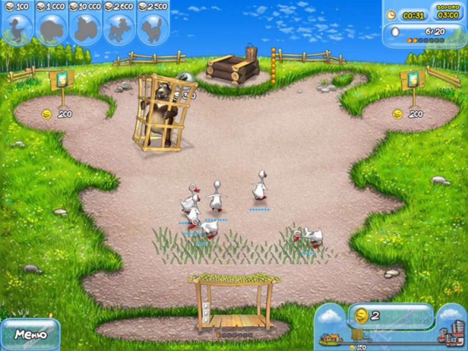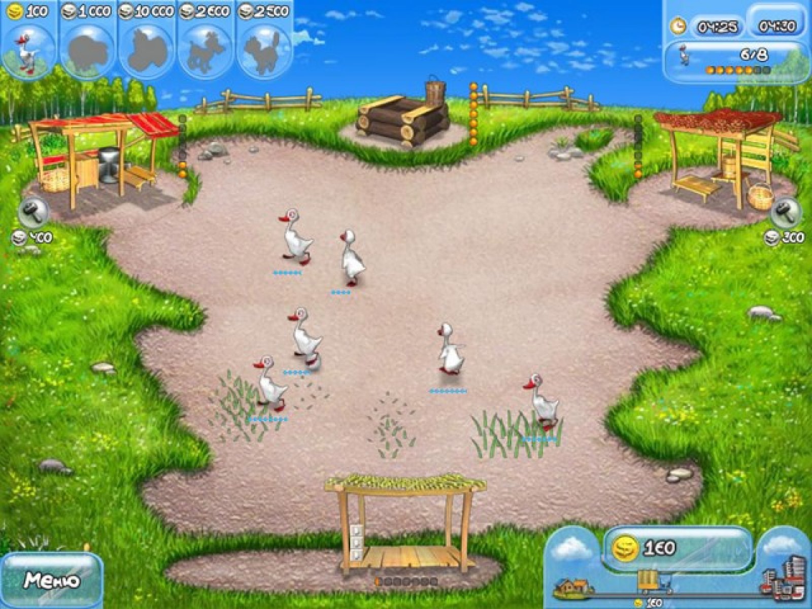 В этой веселой аркадной игре вам нужно помочь одинокому фермеру превратить чахлый хуторок в богатый и процветающий агрокомплекс со своими пекарнями, прядильнями, маслобойками и другими постройками. Дело это непростое: нужно постоянно следить за тем, чтобы на участке росла свежая травка, которую едят гуси, овцы и коровы. Когда животные насытятся, то они смогут производить продукты. Собирайте яйца, шерсть или молоко, чтобы отправить это добро на склад, а оттуда — прямиком на городской рынок. Для прохождения каждого уровня вам необходимо выполнить определенную задачу: купить некоторое количество животных или же произвести нужное количество тортов, сыров, молока или ткани на продажу. В игре вас ждет увлекательный игровой процесс, в котором участвуют смешные (а иногда просто уморительные!) персонажи. Забавные животные обязательно понравятся детям, а взрослые по достоинству оценят динамику игры, благодаря которой любой желающий сможет освоить тонкости управления собственным хозяйством.