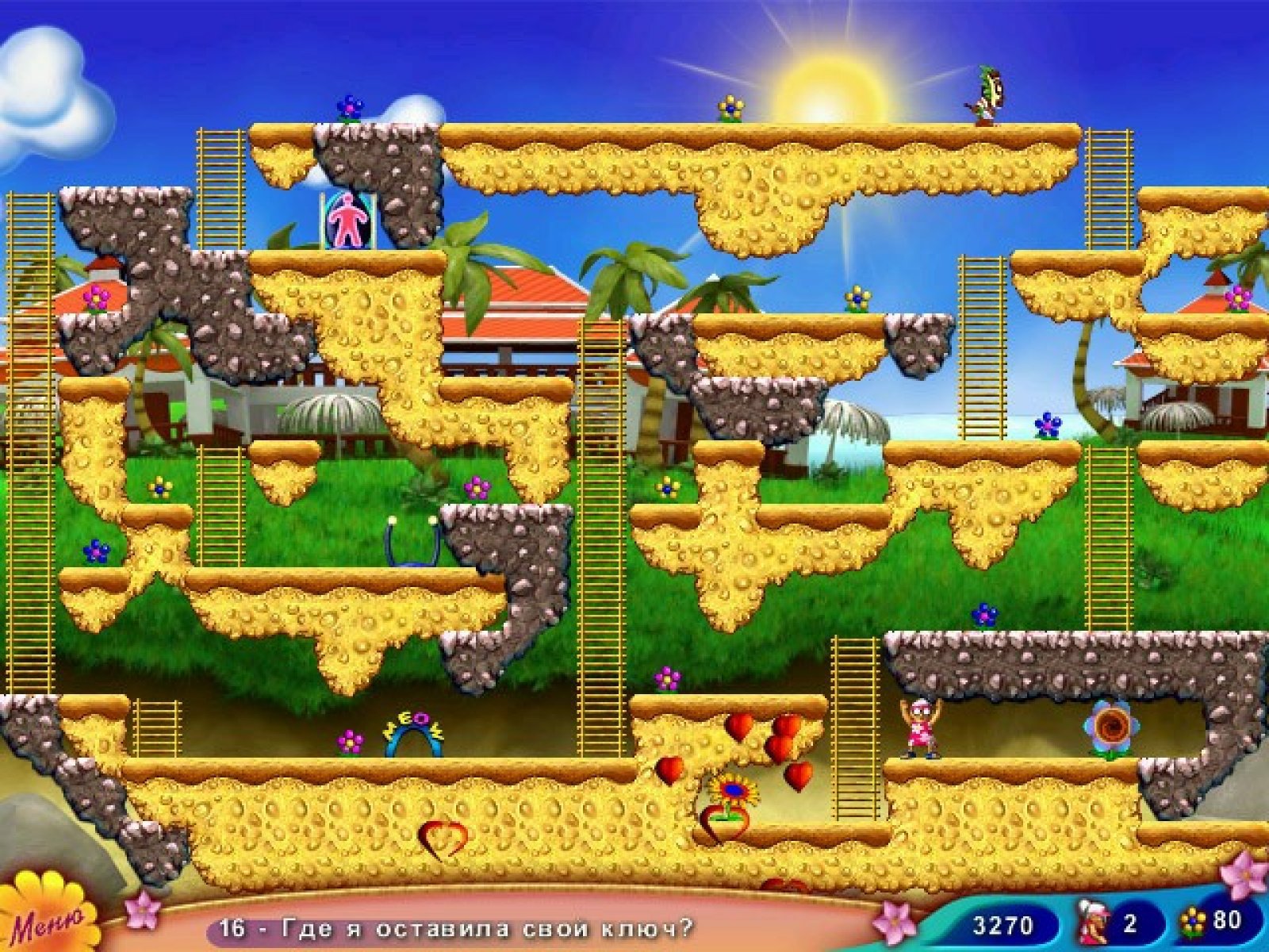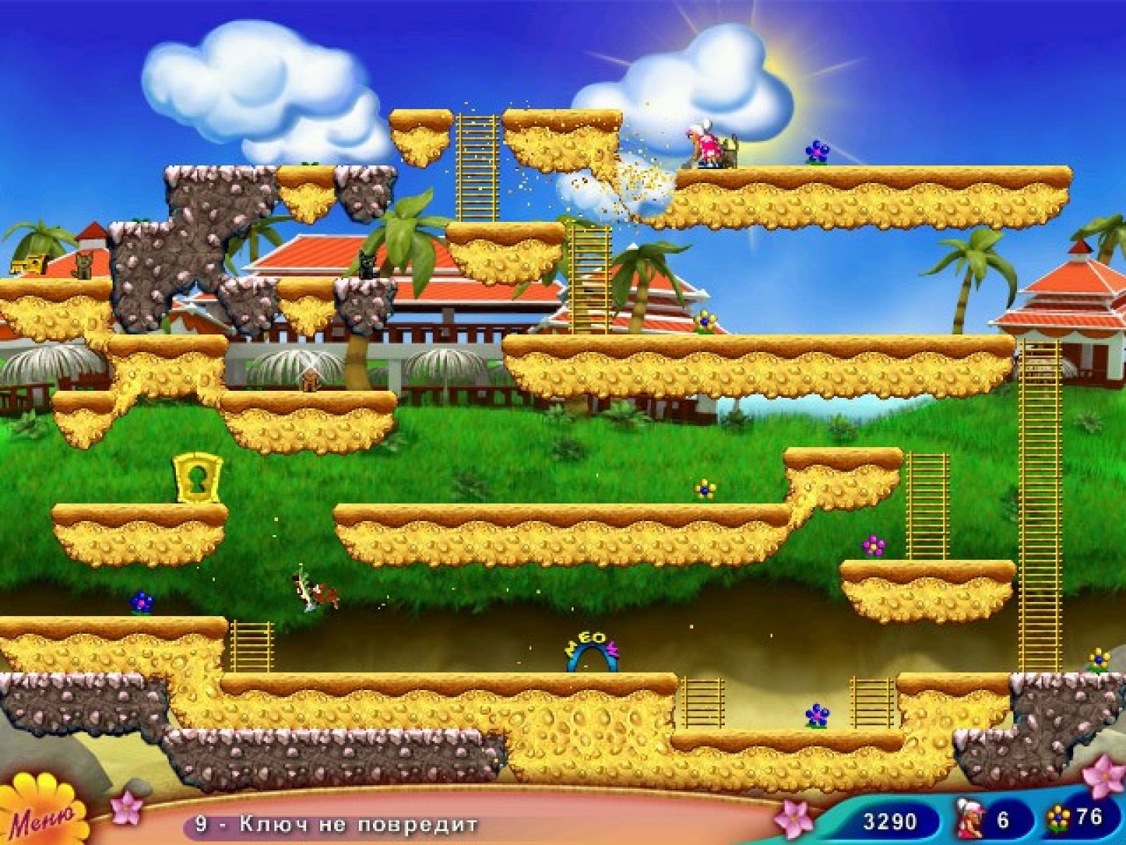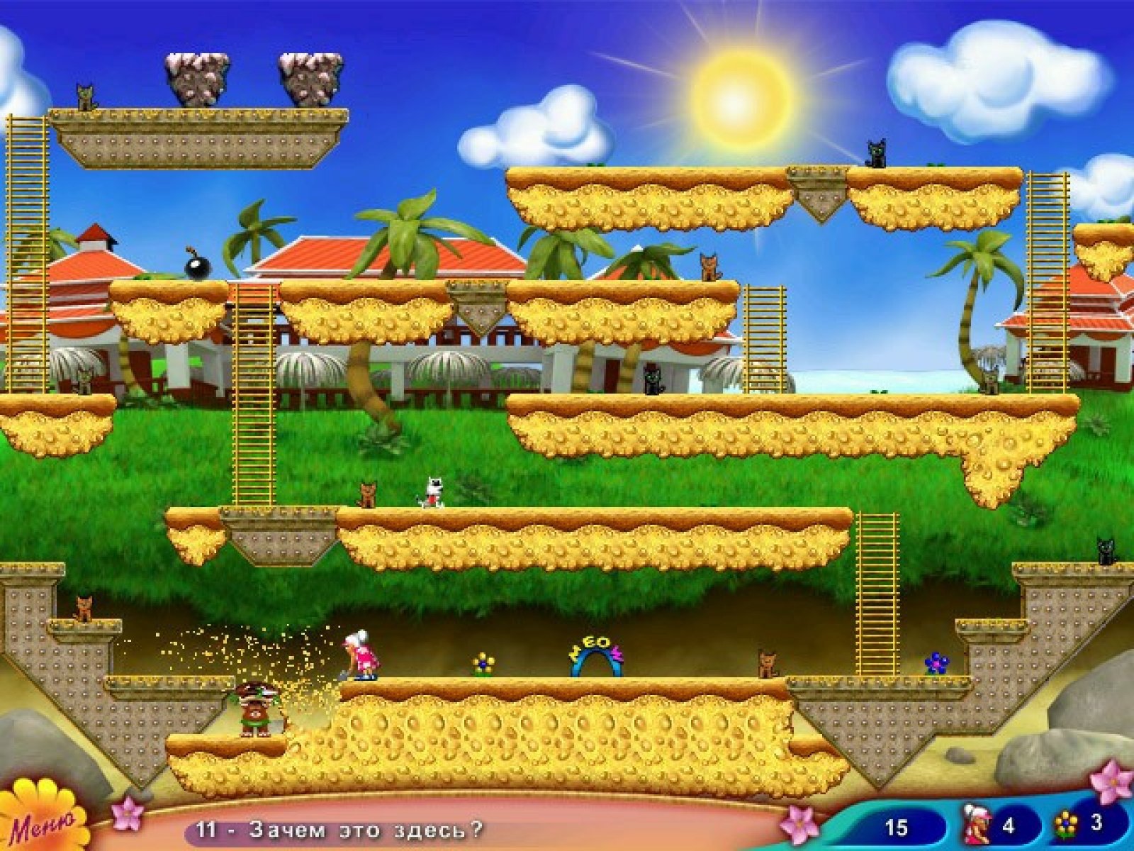Отличная игра для любителей жанра платформер. Веселая и динамичная, она никого не оставит равнодушным. Главный герой игры - Бабуля - вместе со своими котятами отдыхала на экзотических остравах. Пока она грелась на солнце и употребляла всевозможные коктейли, гид увел котят на экскурсию и они разбежались по всем островам. Теперь Бабуле необходимо их найти. Но это не так просто. На островах множество агрессивно настроенных аборигенов, животных, от вида которых Бабуля может упасть в обморок. Однако, если перед ними выкопать яму, они провалятся в нее и не испугают Бабулю. Так, переходя от уровня к уровню, от острова к острову, Бабуля должна собрать всех кошечек, и благополучно вернуться домой.