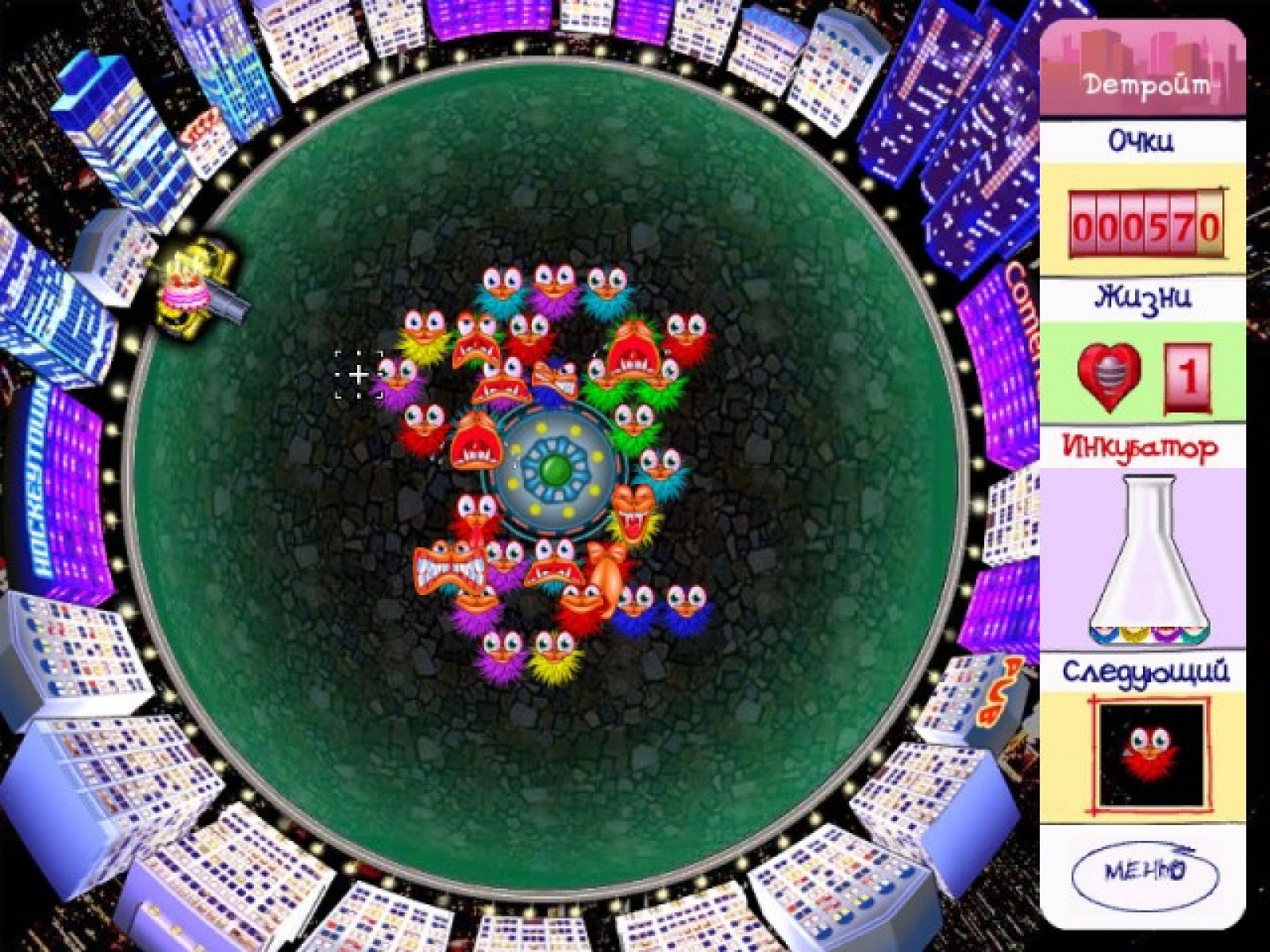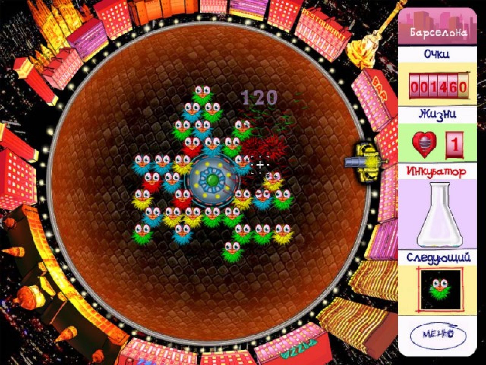 Земля под угрозой. Планету атакуют жуйчики, хищные инопланетяне с планеты Жувания. Коварные захватчики нацелились на крупнейшие города всех континентов. Помогите храброму капитану Дэну Корнфлейку противостоять инопланетному нашествию. Спасите Париж и Рим, Нью-Йорк и Токио, Москву и Санкт-Петербург. Отважный капитан ведет неравную борьбу, истребляя полчища жуйчиков и спасая заодно бродячих собак, котят и сантехников. За противостоянием с замиранием сердца следит вся планета. Красивейшие города мира со своими достопримечательностями во всех архитектурных деталях будут безжалостно уничтожены зубастыми захватчиками, если вы не встанете на защиту родной планеты и не предотвратите падение земной цивилизации. Правила игры просты. Вы управляете пушкой, заряженной разноцветными жуйчиками, которая перемещается вокруг площади. В центре этой площади находится звездолет, из которого появляются полчища инопланетных захватчиков. Ваша задача, стреляя разноцветными жуйчиками, собирать их в группы по три и более. Но будте внимательны, время от времени все новые и новые отряды высаживаются на планету. Постепенно ваш арсенал пополнится разнообразным бонусным оружием. Используйте его для предотвращения захвата городов. От города к городу захватчики становятся все хитрее и наглее, и уже не только скорость, но стратегическое использование разных видов оружия спасает мировые столицы от уничтожения, когда из звездолета появляются новые и новые отряды противника.