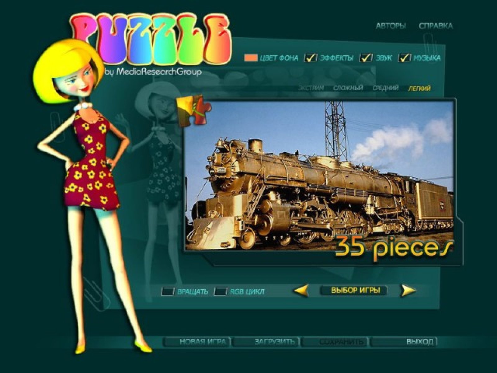 Эта игра для всех любителей классических паззл, картинок, порезанных на кусочки. Огромный выбор картинок, три уровня сложности, простое управление делают игру доступной для каждого. Дети могут выбирать простые уровни из 35 кусочков, а наиболее опытные игроки могут собирать уровни из 165 паззл. Усложнить задачу можно включив вращение или специальный режим цветового вращения.