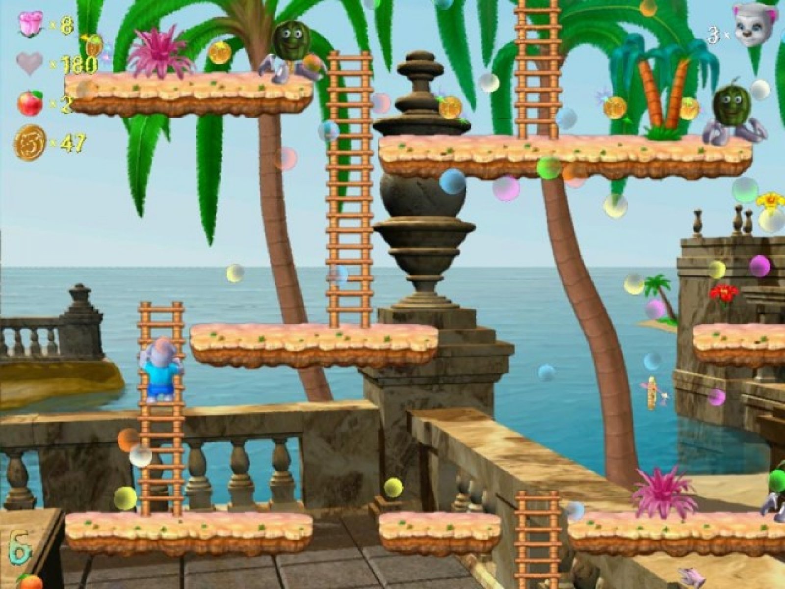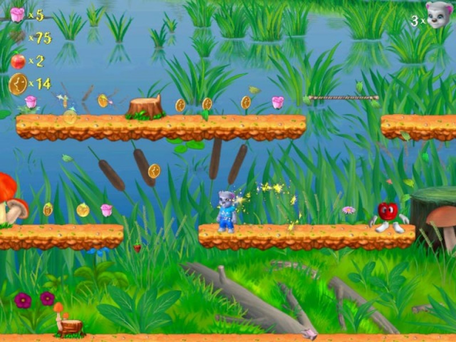 Однажды Татошка работал в огороде, и вдруг вспомнил, что у них с возлюбленной Фиалочкой сегодня юбилей их свадьбы. И он обещал ей собрать самый красивый букет цветов. И он отправился на поиски. В этой игре вам предстоит помочь Татошке в его нелегком поиске. Ведь чтобы собрать самый красивый букет для любимой, нужно обойти множество мест, и встретиться с коварными овощами и фруктами, которые мешают Татошке в его благородном деле. Так же необходимо собирать монетки, разбросанные на пути. Как только вы соберете необходимое количество монет, вы сможете улучшить какое либо качество главного героя. Эта красочная игра предназначена в первую очередь для самых маленьких игроков, которым, безусловно, понравится этот замечательный мир.