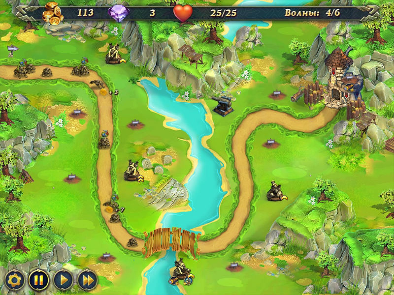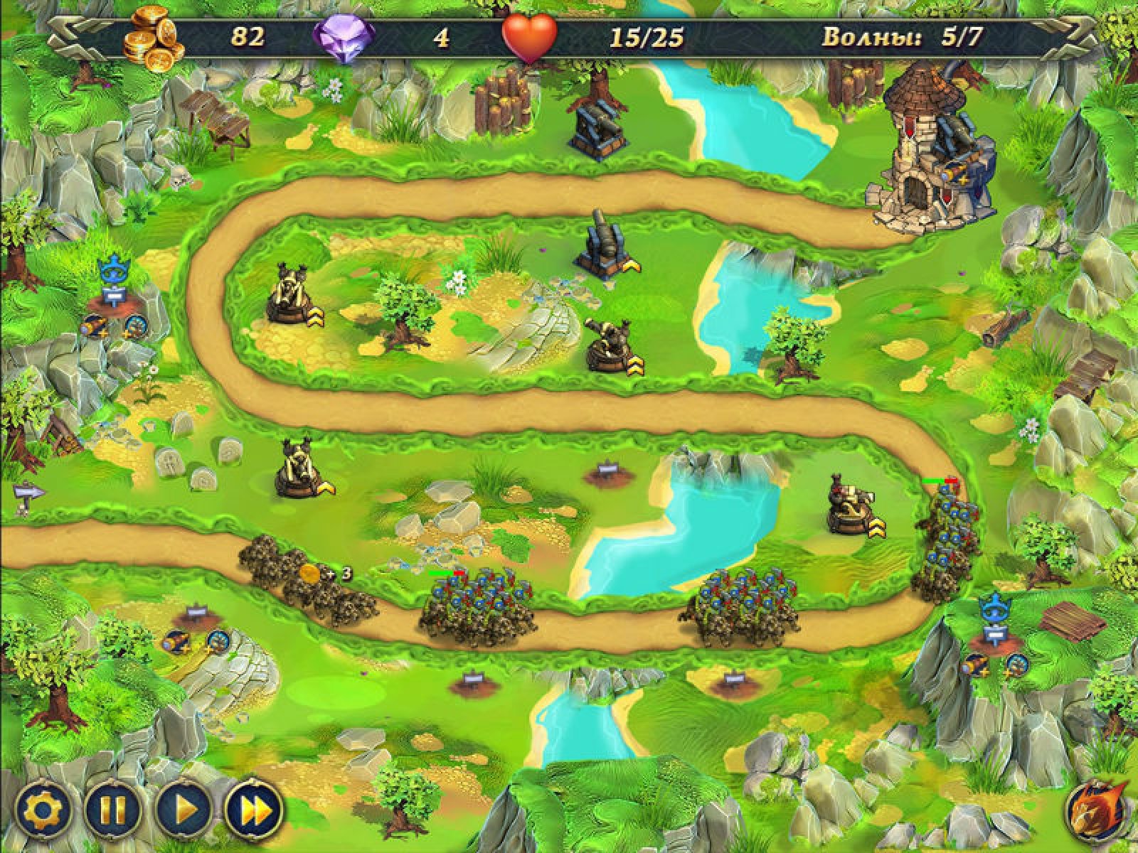 Добро пожаловать в новую игру жанра Tower Defense - "Королевская защита"! Помогите гномам справиться с настырными троллями! Стройте башни, расставляйте ваших бойцов так, чтобы ни одни тролль не прошел! В вашем распоряжении множество разнообразных юнитов, отличные заклинания, интересные карты и часы отличной игры!