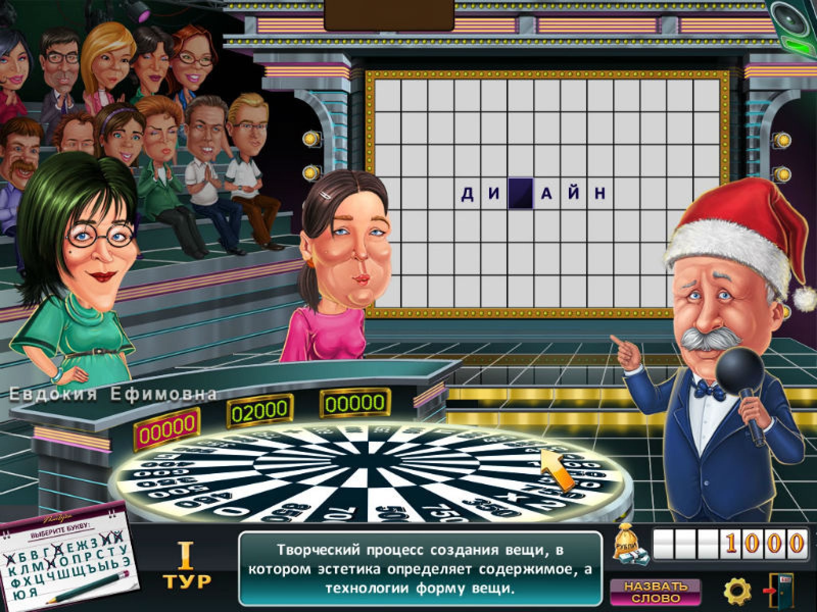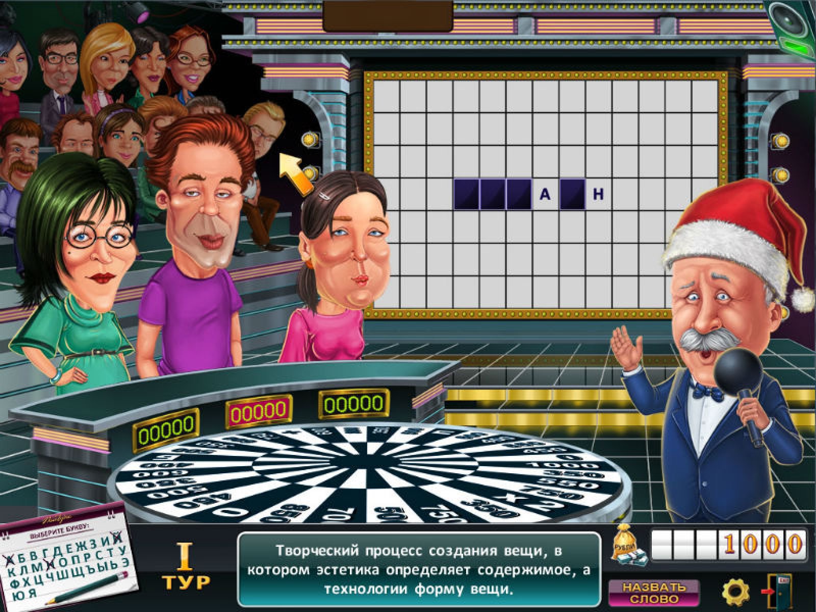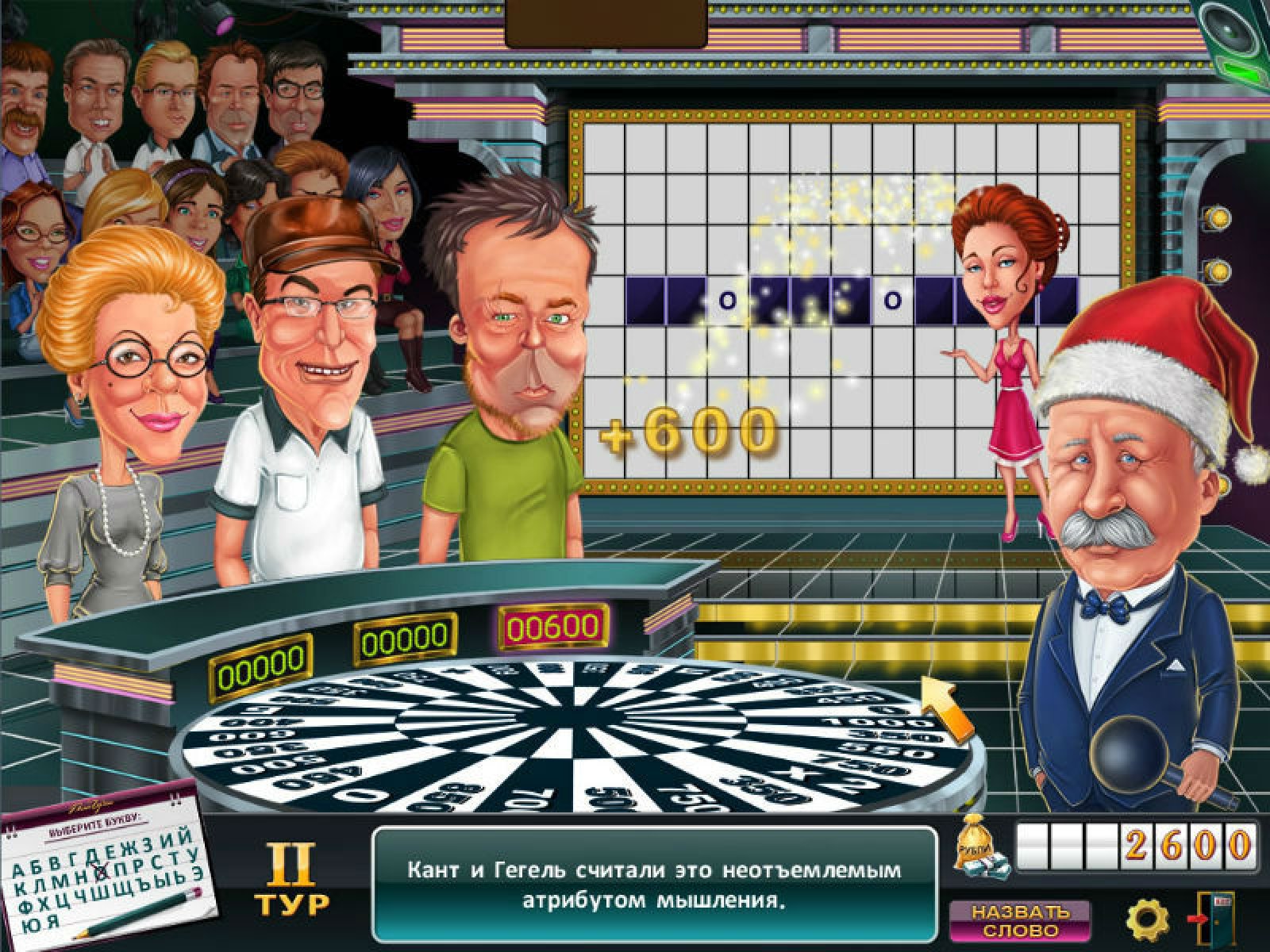 Добро пожаловать на «Поле чудес»! Всеми любимая игра теперь и на мониторах компьютеров. Вам предлагается несколько режимов игры – как расслабленный, так и напряжённая борьба с искусственным интеллектом. Возьмите на себя роль звезды и покажите, на что вы способны! По мере того, как вы отгадываете слова, новые задания становятся всё сложнее и сложнее. Но есть, куда стремиться! Ведь на вырученные деньги вы можете обставить свой виртуальный дом! Скачайте новую игру – «Поле чудес», которая порадует как взрослых, так и детей.