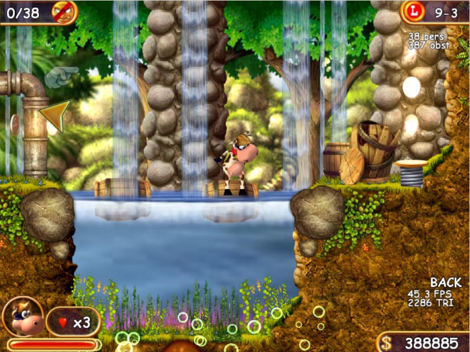 Предыстория, вкратце, такова: известный злодей профессор Дуриарти совершил побег из тюрьмы, где отбывал пожизненный срок за очередное мрачное преступление. Он сбежал, загипнотизировав охранников и перепилив цепь, на которой сидел. Сумрачный разум негодяя мыслит иначе, чем разум обычного беглого зэка. Поэтому первым делом он коварством захватил мирную ферму, расположенную в Солнечной Долине - райском местечке, где выращивалось много вкусных овощей и фруктов. Невинные жители долины были взяты в заложники. Профессор, будучи ненормальным, оказался большим специалистом по части генетики. Он клонировал двух обитателей фермы, свинью и козла, и сделал армию клонов, бездушных головорезов, полностью ему преданных. Дальнейшие замыслы профессора пока туманны, но зловещие эксперименты в пещерной лаборатории продолжаются. Тем временем, о бесчинствах, творимых Дуриарти, узнает Супер-Корова. Пока полиция, МЧС, ФСБ и другие структуры только начинают оценивать масштабы ситуации, Супер-Корова уже вылетела в Солнечную Долину выручать друзей... Такова, вкратце, предыстория. Проект Супер-Корова делался командой НевоСофт без малого два года. Не имеет смысла говорить, сколько любви и нервов мы вложили в эту игру, чтобы порадовать вас. Художники и дизайнеры поистине творили чудеса, создавая неповторимый игровой мир. Композитор по секрету признался, что это его лучшая работа. Программисты использовали хитрейшие и новейшие технологии. При этом, игра будет работать практически на любом компьютере, в том числе и у вас в офисе. Все персонажи в игре трехмерны и проанимированы с душой, подчеркивая индивидуальный характер каждого. Сюжет тянет на полноценное кино и раскрывается сценическими постановками в духе Тарантино. Главные герои были озвучены известными актерами. Например, голос Супер-Коровы принадлежит Даше Юргенс, соратнице Сергея Бодрова по фильму Брат-2. Цыпленка Никки озвучивал Федор Машанов, всем известный по мульт-хиту "В поисках Нэмо" (голос рыбки Нэмо). Мы уверены, что это лучшая игра в жанре платформеров, из существующих сегодня.