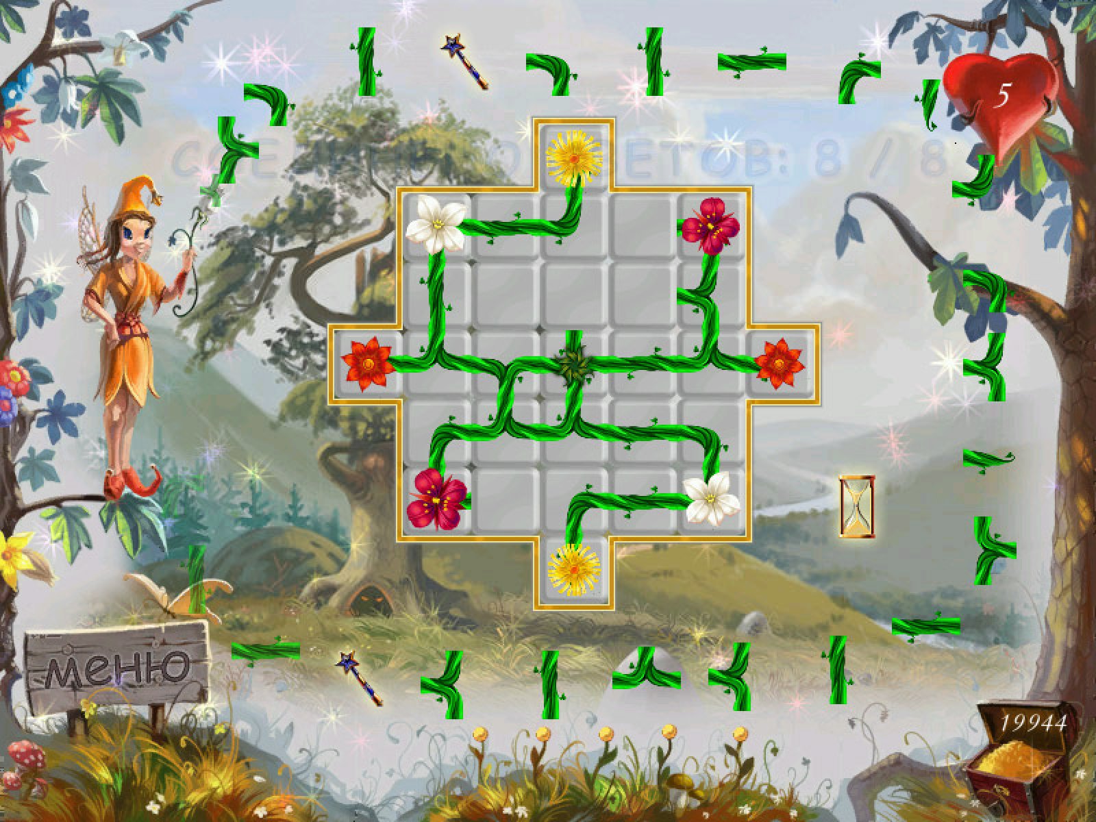 Эта красочная логическая аркада повествует о приключениях юной эльфийки, которая решила изучить могущественную магию природы. Задача эта не из простых, поэтому нашей героине понадобится помощь, чтобы решить множество увлекательных логических задачек и пройти семь сказочных миров. На каждом уровне Цветочных загадок вас ждет игровое поле, на котором в хаотичном порядке расположены волшебные цветы и небольшие кусочки стебельков. Вращайте их при помощи мыши таким образом, чтобы соединить стебельками два (или более) цветка. Сделать это нужно для того, чтобы очистить уровень от волшебных плиток. Эта игра понравится всем поклонникам увлекательных головоломок. К вашим услугам три игровых режима, а также две дополнительные мини-аркады, которые приятно разнообразят игровой процесс. Пройдите сквозь все испытания и овладейте самыми сокровенными тайнами эльфийской магии.