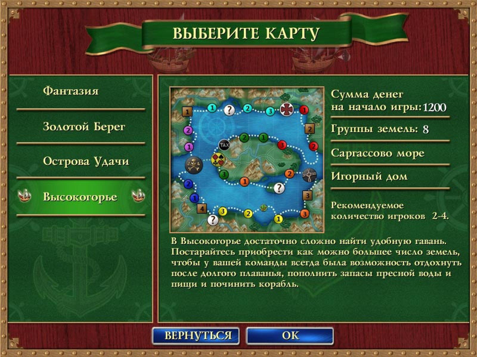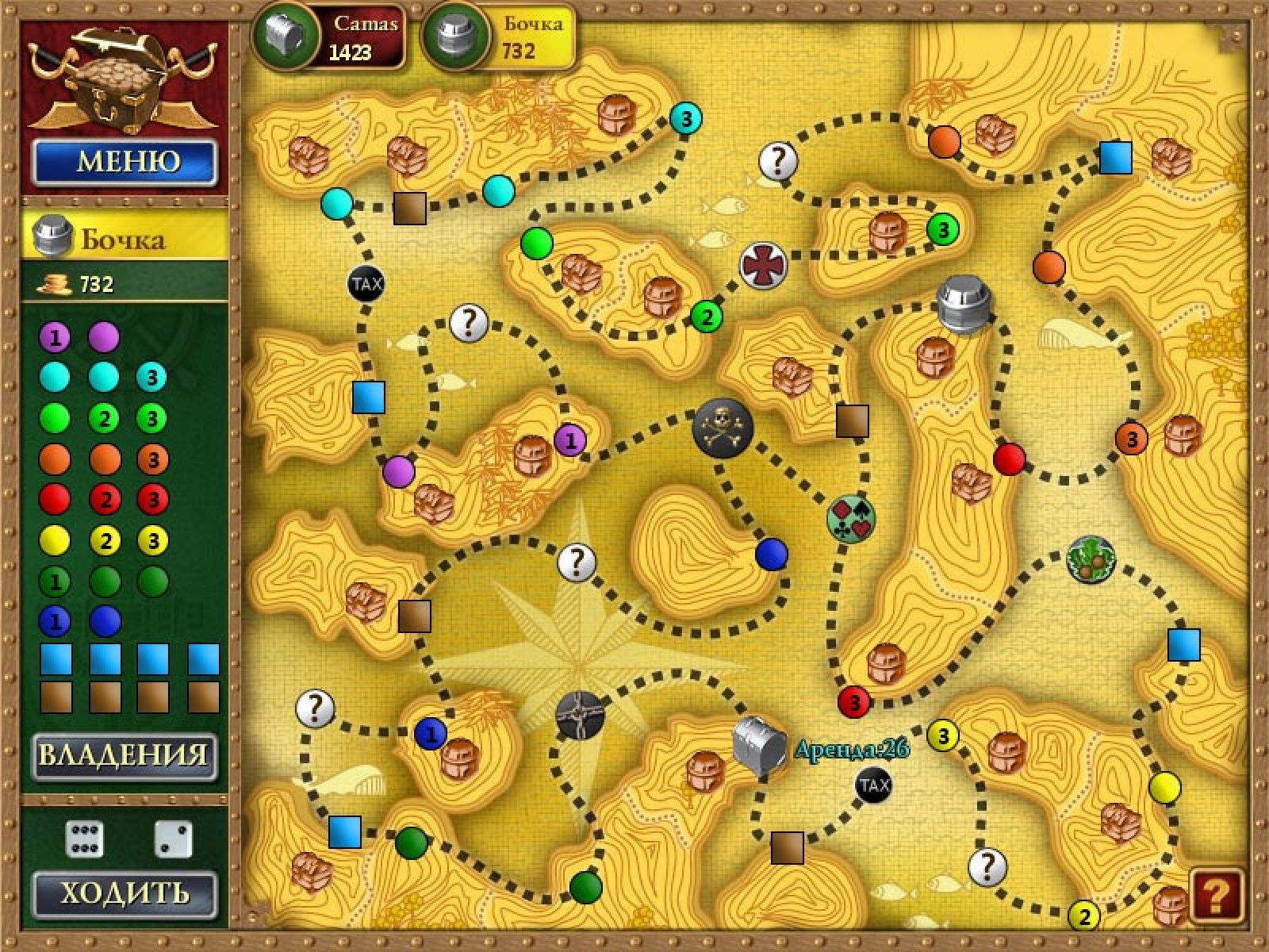Пиратская монополия — это компьютерный вариант известнейшей экономической игры монополия в экзотическом пиратском антураже. В ней вам предстоит карьера отставного корсара, пытающегося пристроить на суше награбленные пиастры. Играть можно против компьютерных соперников или с компанией друзей за одним компьютером. Бросая виртуальные игральные кости, игроки по очереди ходят по игровому полю. Стоя на свободной земле, вы можете купить ее, и тогда остальным придется платить за постой. Скупив все земли одного цвета, вы сможете строить на любой из них корабли. Чем больше кораблей построено на земле — тем больше должны будут платить соперники. Но чтобы скупить все земли самому, нужна почти невероятная удача. Поэтому с противниками придется постоянно заключать сделки, обмениваясь землями. Дополнительный интерес игре придают специальные поля: например, игорный дом, где вы сможете попытать счастья за игрой в рулетку, тюрьма, в которой придется пропустить три хода или искать способ выбраться, и другие.