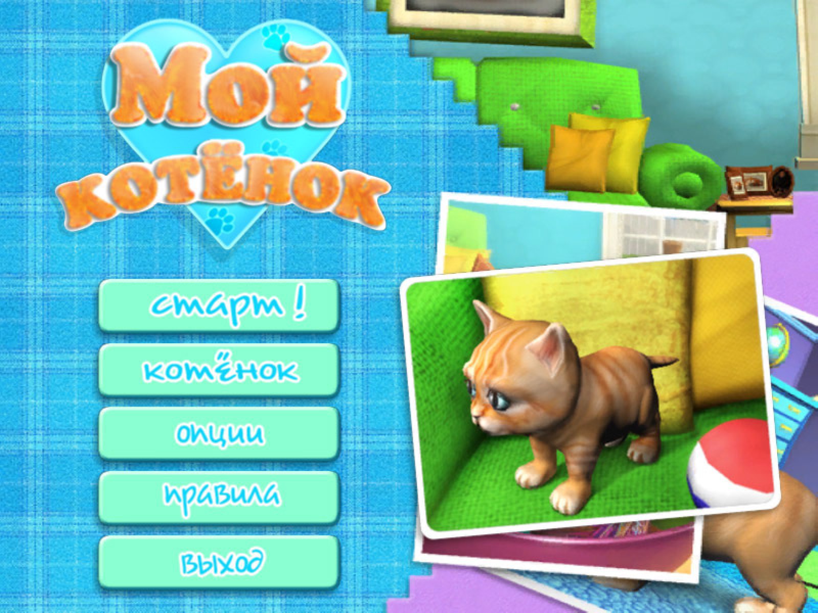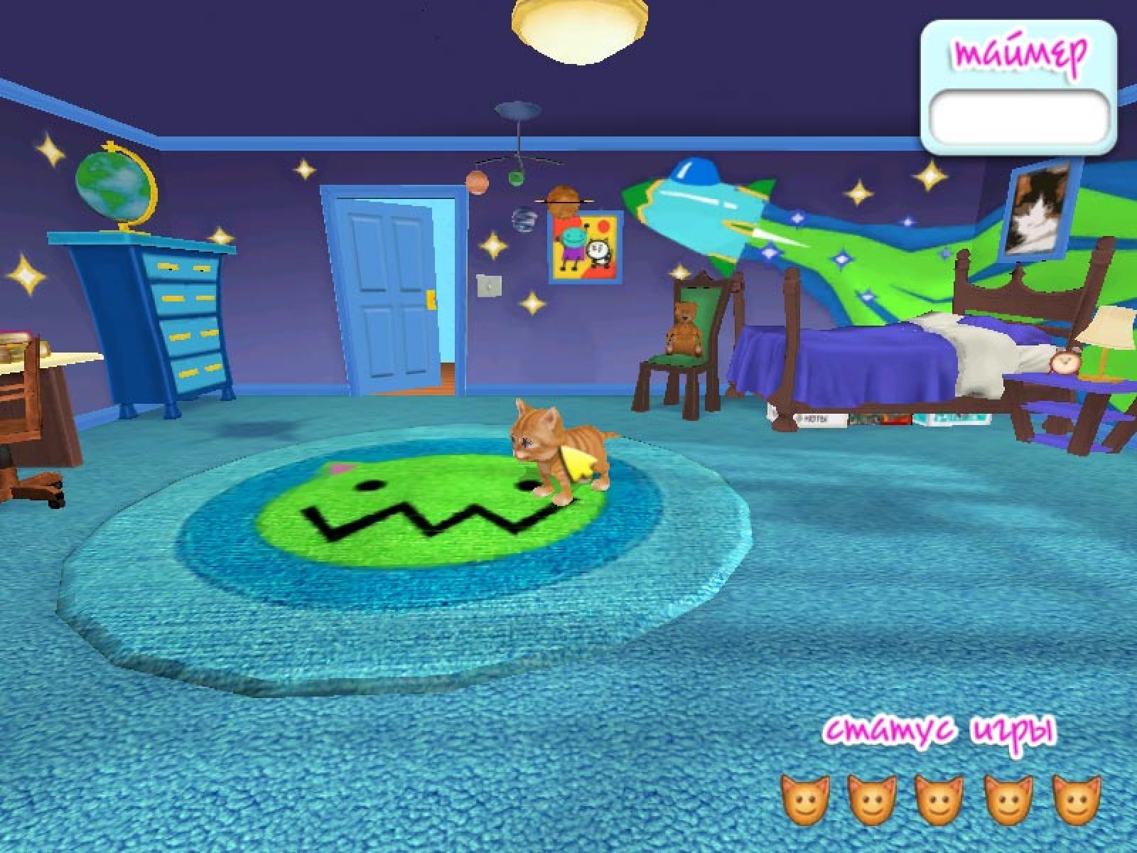 В этой игре предлагается воспитывать домашнее животное. Маленький котенок, который живет в виртуальном доме, нуждается в уходе и ласке. Вы должны кормить его, ухаживать за ним, чистить его ящик для мусора и хорошо развлекать. Но радость от общения с ним часто перевешивает хозяйственная работа, поэтому не забывайте наблюдать за котенком и ласкать его мягкий мех, слушая, как он мурлыкает. Теперь Вы можете воспитать вашего собственного небольшого котенка прямо на вашем компьютере. Но помните, что обладание котенком это большая ответственность. Шесть котят на выбор: российский Синий цвет, Полосатый кот, сиамский, Экзотический, Абиссинский, и Короткошёрстный американец. Различные комнаты, наружные местоположения и конечно зоомагазин, все это для того, чтобы домашний питомец был счастлив!