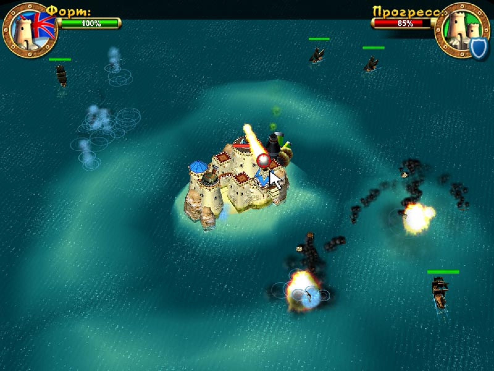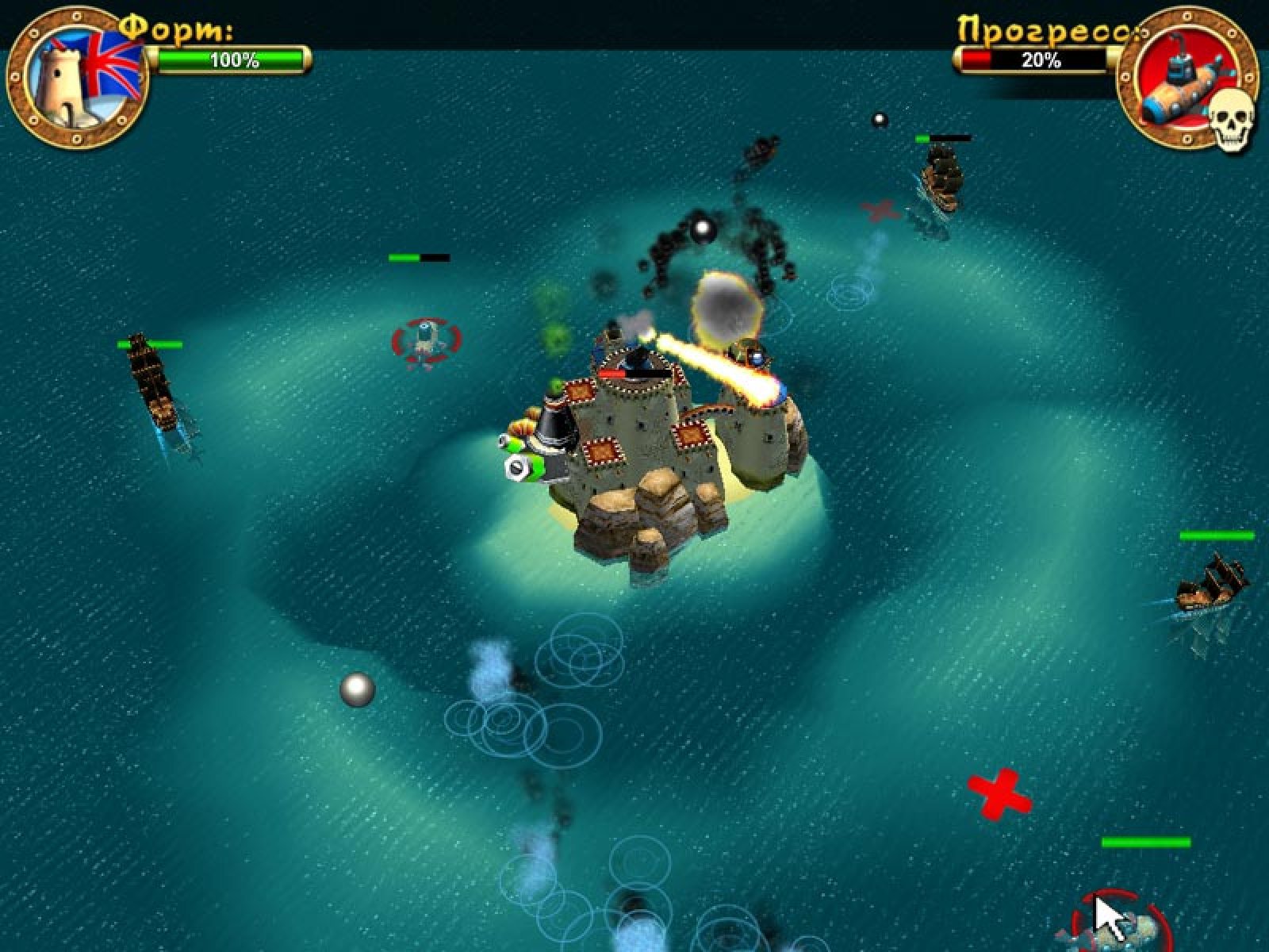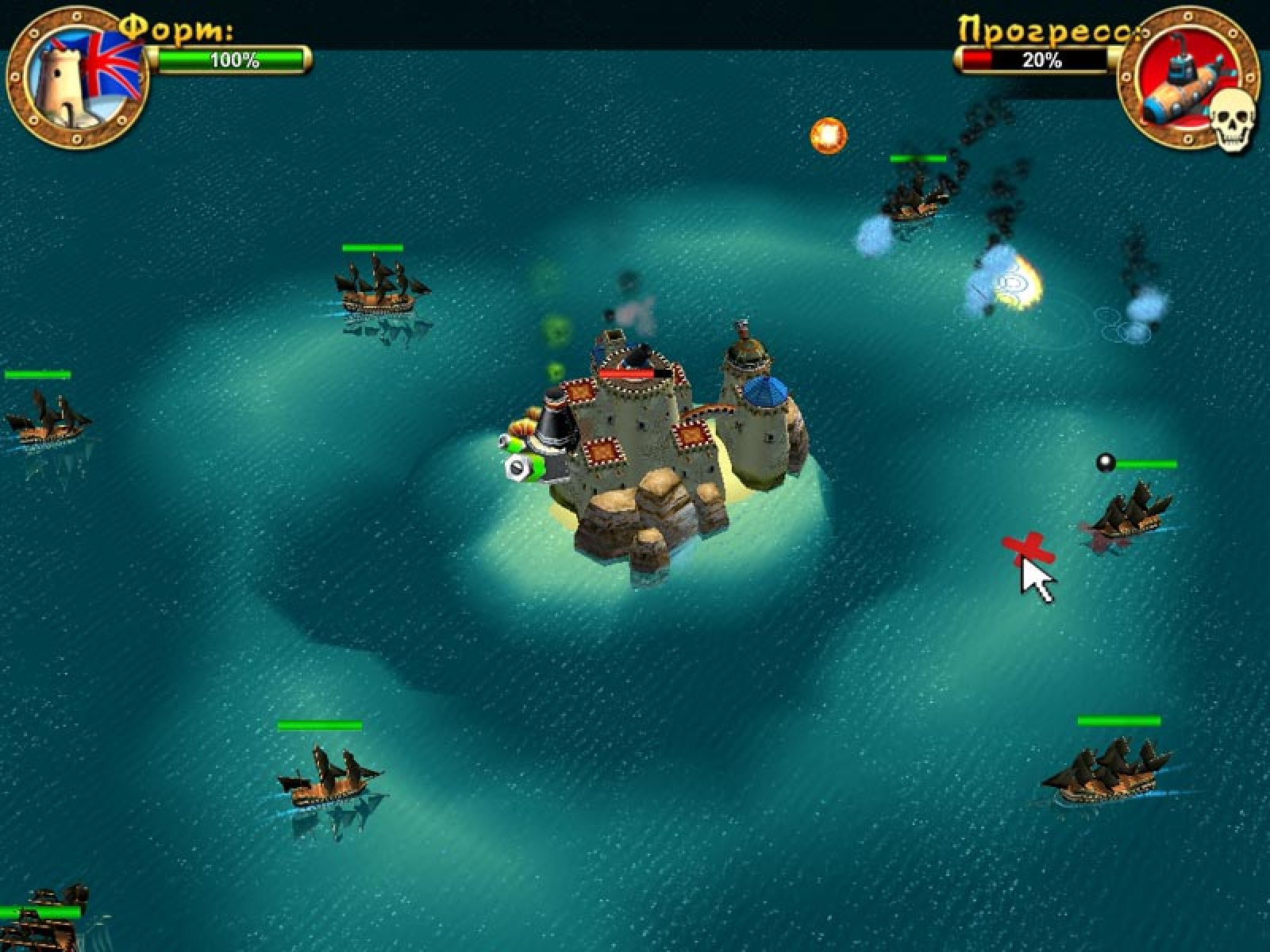 В этой игре вы можете примерить на себя роли лейтенанта британского флота и бравого пирата. В первом случае, вам придется сражаться с коварными пиратами, и получать заслуженную награду. Во втором - самому встать на дерзкий путь приключений и разбоя. Ну, а можете вообще просто защищать свой форт от желающих его захватить - и это уже будет битва на выживание! Но в любом случае, это будет очень интересно - ведь после боя у вас появляются деньги, которые вы можете потратить на укрепление форта, новые постройки и дополнительное вооружение. Ну, а если еще и приручить большую белую акулу - получиться неплохое подспорье в битве с противником. Итак, выбирайте, за кого будете играть - и вперед, защищать свои владения от коварных захватчиков!
