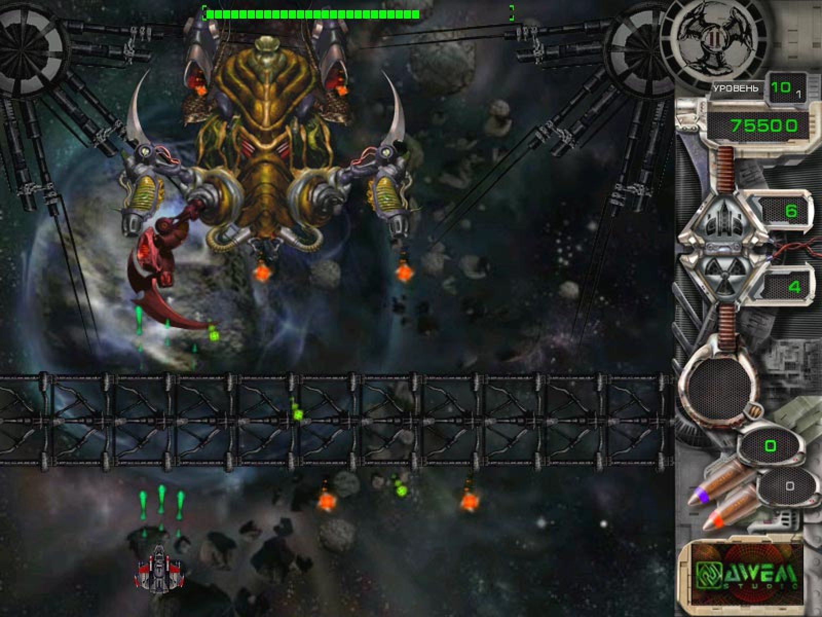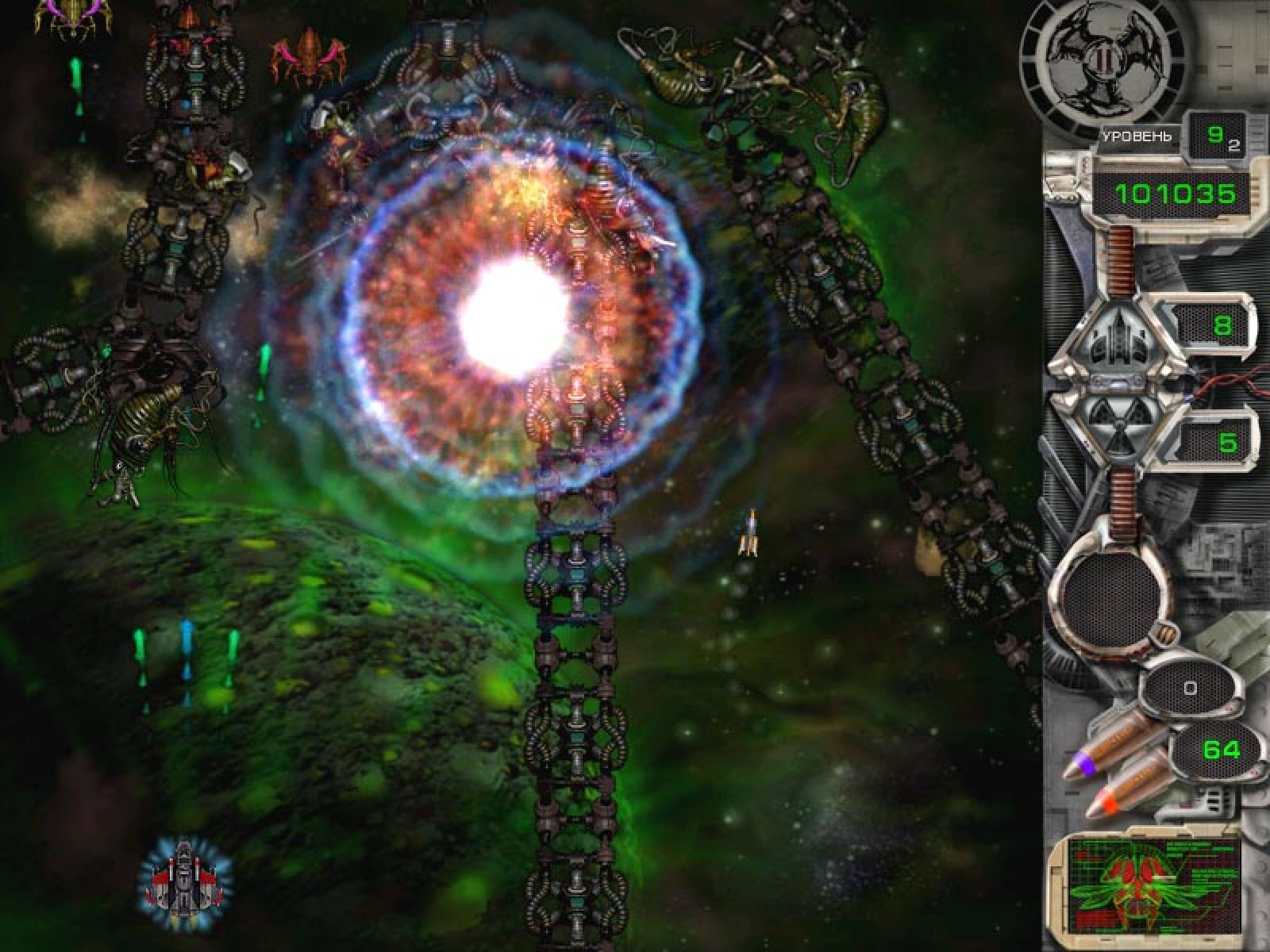 В этой космической аркаде вам предстоит спасти вселенную от нашествия механических насекомых. Враги многочисленны - их более 30 видов, и очень коварны. Но и у них есть слабые места, а у вас, в свою очередь - мощное оружие: разнообразные ракеты, бомбы и пушки. И, конечно, дополнительные бонусы, и приятные мелочи - например, пополнение собственного арсенала вооружением подбитого противника. Управление в игре простое и понятное - ваш корабль перемещается вдоль нижней линии экрана с помощью движения мышью, а с нажатием кнопок мыши происходит отстрел противника. Росчерки ракет и взрывы бомб радуют глаз, а музыкальное сопровождение добавляет боевого настроения. Так что, настройте сложность игры и скорее готовьтесь к старту - ведь от успеха вашей миссии зависит будущее человечества!