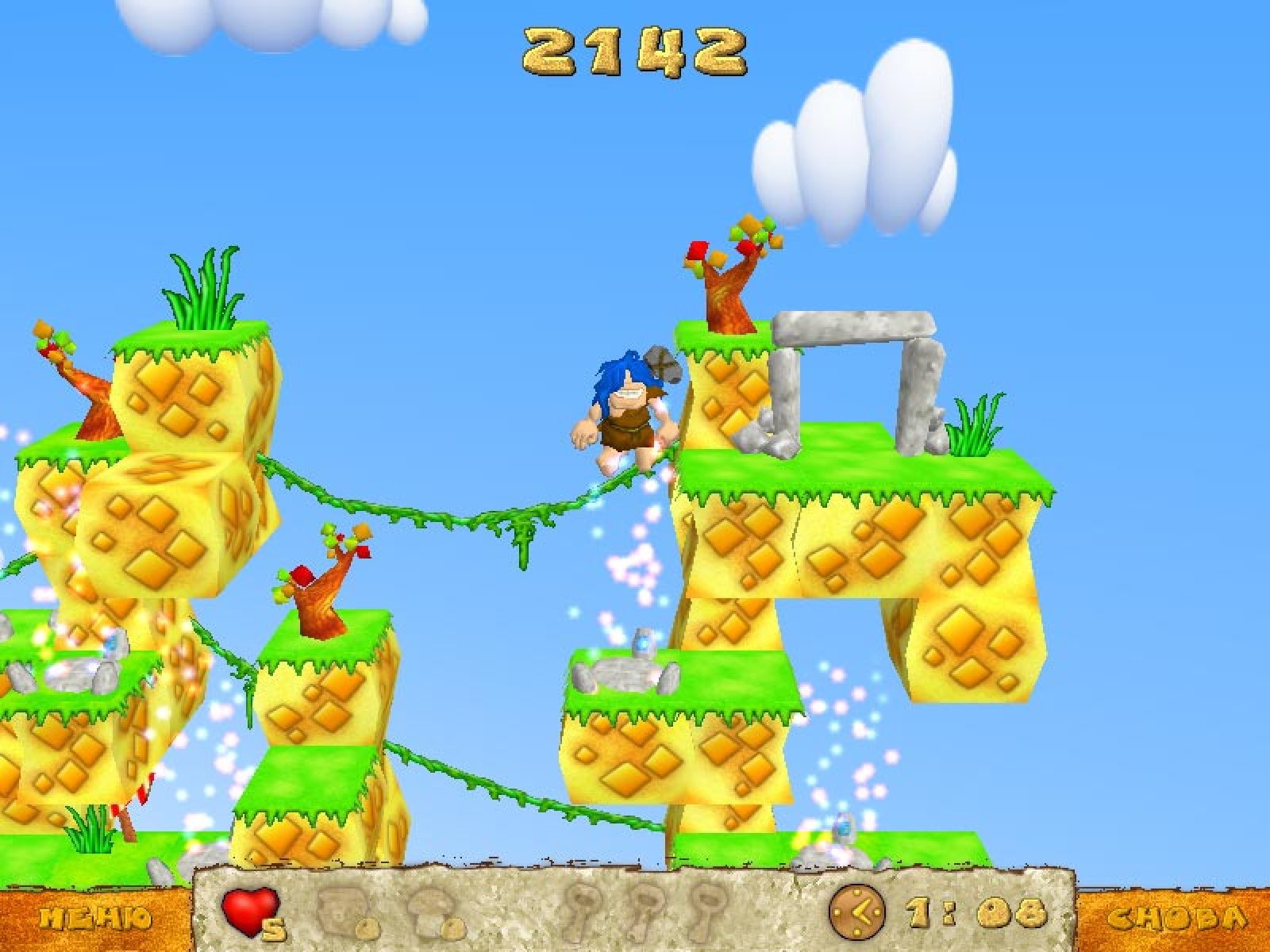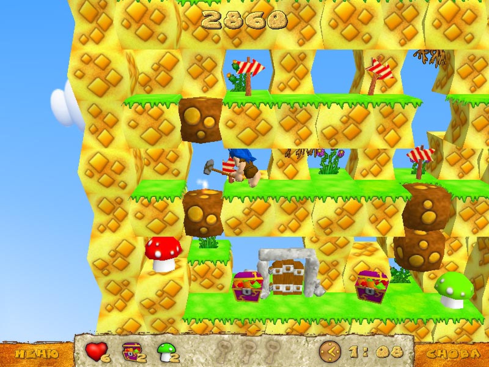 В этой аркаде вам предстоит помочь пещерному человеку найти все грибы и собрать все драгоценности, находящиеся в лабиринте. Сделать это нужно максимально аккуратно — на некоторых уровнях обитают и монстры, и ядовитые поганки, которые и сами не прочь попробовать на зуб зазевавшегося грибника. Будьте аккуратны — встреча с монстрами грозит потерей одной жизни. Но и наш веселый герой тоже не лыком шит: он может сбросить на врага булыжник. Против такого весомого аргумента ни один саблезубый хищник возразить уже ничего не сможет. Впереди вас ждет более сотни разнообразных уровней и три игровых режима. Детский — придется по вкусу самым юным искателям приключений, Аркада — понравится опытным борцам с виртуальными монстрами. Ну а режим Логика, который отчасти напоминает классический Pusher, мы рекомендуем самым искушенным любителям компьютерных игр.