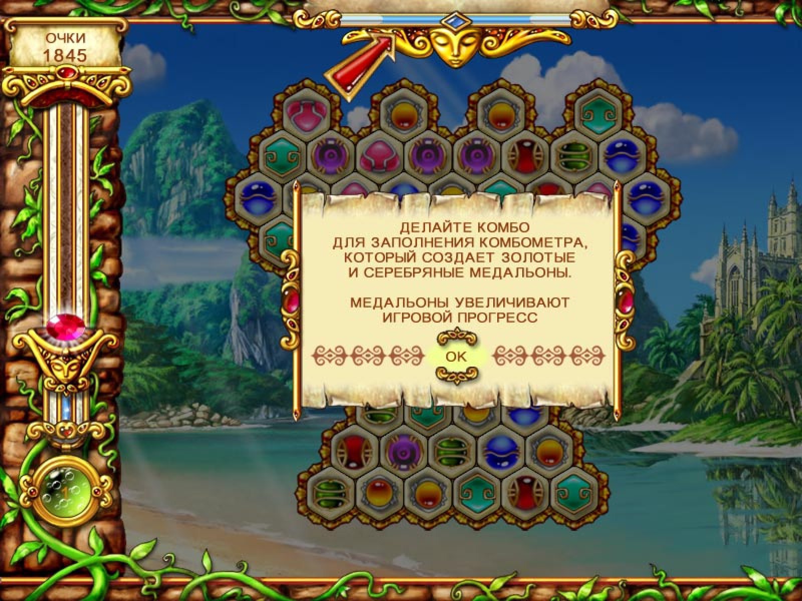 Путь к Запретному дворцу, надежно спрятанному от посторонних глаз, лежит через земли таинственной Амазонии. На этом острове скрыты несметные сокровища, а заклинания Древних надежно охраняют их от постронних глаз. Только настоящий смельчак, чьи помыслы чисты, а дух силен, сможет пройти тернистый путь через леса, горы, бушующие водопады и взойти на вершину Великой горы. Там, за семью печатями, кроются духи стихий. И если вы сумеете совладать с ними, сокровища Амазонии будут по-праву принадлежать вам. Суть игры проста, а процесс увлекателен. Вам предстоит менять местами магические артефакты, составляя по три в ряд. Собирать сокровища Амазонии вам помогут разнообразные бонусы. Приятная музыка, сочная графика, затягивающий процесс, яркие эффекты надолго удержат вас в игре. Великолепная, красочная головоломка обязательно понравится всем любителям аркадно-логического жанра. Понятные правила и увлекательный геймплей подарят вам незабываемое приключение!