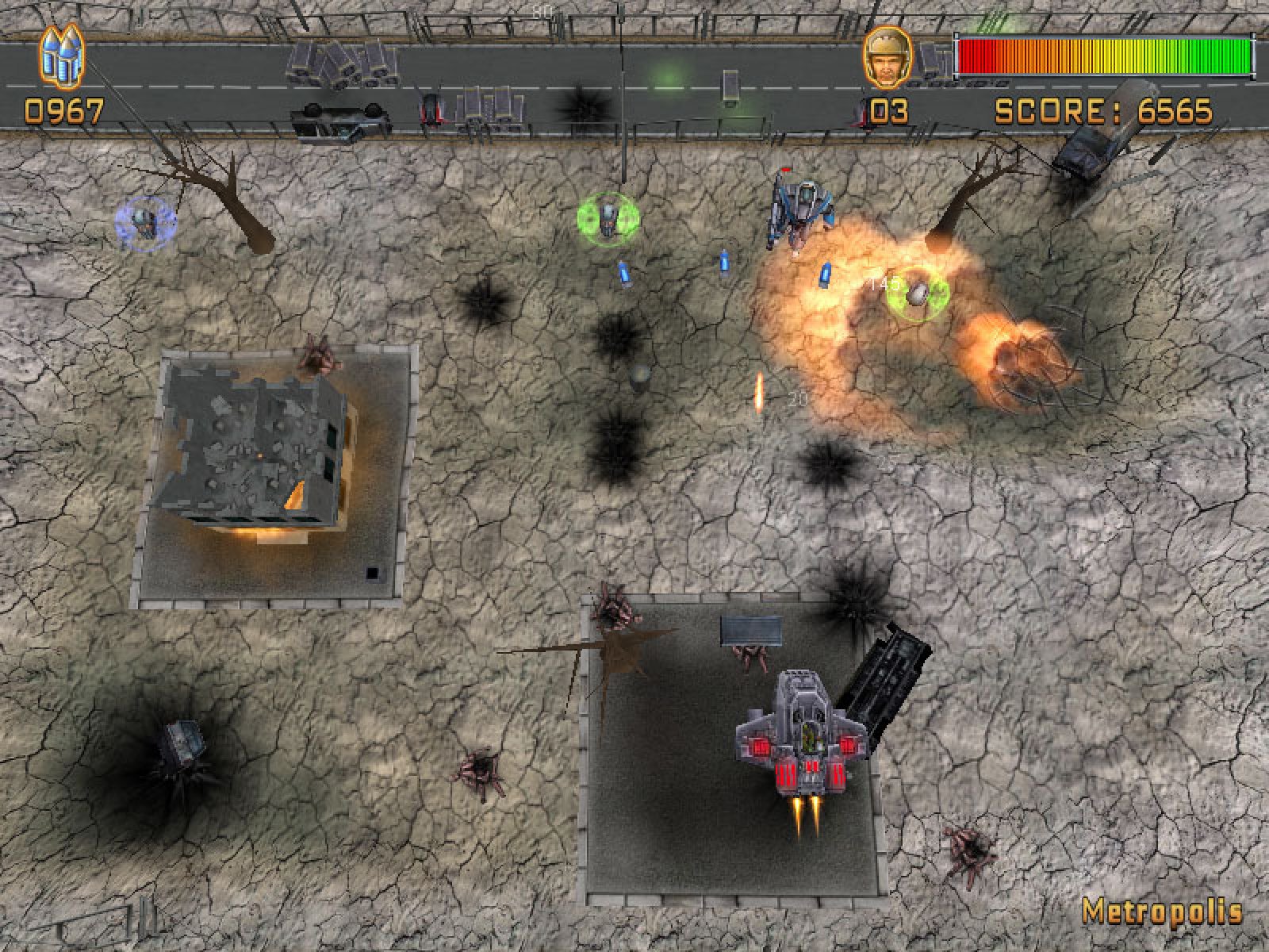 Представьте, что Судный День настал: машины правят миром, человечество на грани истребления, а вы - его последняя надежда на существование. По этой причине выполняемая вами миссия приобретает статус особой важности! В ваше распоряжение предоставлен истребитель с ограниченным боезапасом - это все, что удалось достать. Но вы можете пополнить запас на поле боя - уничтоженные единицы противника оставляют после себя разнообразные ракеты, бомбы и патроны, поэтому перестрелка с врагом - очень захватывающее зрелище. Так что устраивайтесь поудобнее и помните - от вашей отваги и меткости зависит судьба всего мира!