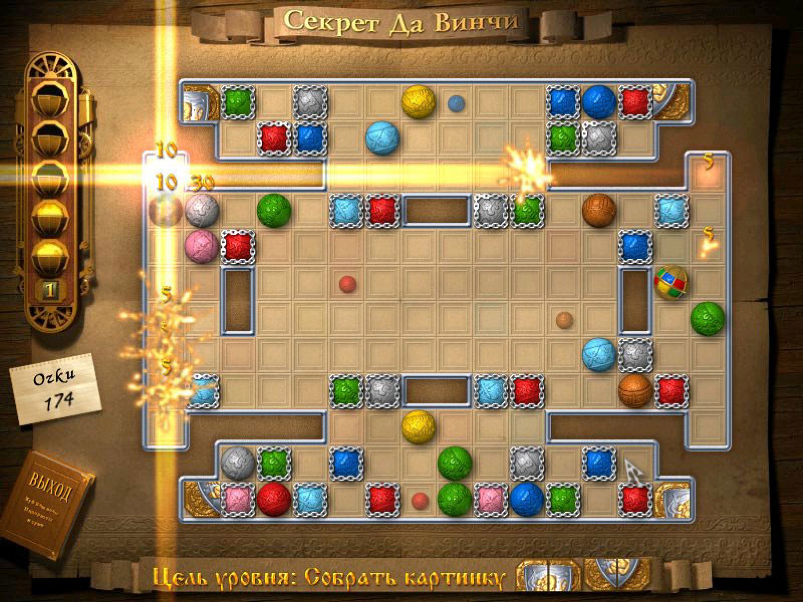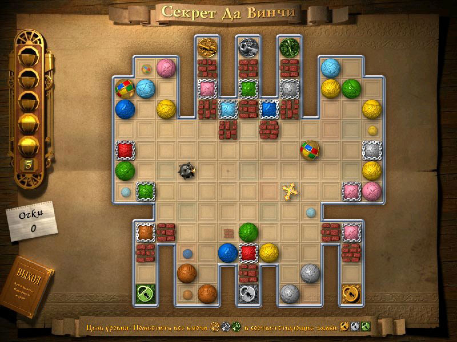 В этой игре вам предстоит разгадать секрет великого Леонардо да Винчи и найти легендарную святыню — Священный Грааль. Но добраться до него будет совсем непросто. Для этого необходимо собрать особые Знаки Силы, которые спрятаны в запутанных лабиринтах, наполненных разноцветными фишками. Чтобы получить заветные знаки, нужно при помощи специальных ключей открыть замки, запирающие выходы из лабиринтов. Но прежде необходимо расчистить себе дорогу, перекладывая фишки таким образом, чтобы после каждого хода образовывалась группа из трех (и более) фишек одного цвета. Эта игра придется по вкусу всем поклонникам головоломок и загадок. Впереди вас ждет множество увлекательных уровней, которые понравятся как опытным, так и начинающим охотникам за приключениями. Но помните — только самые достойные смогут разгадать секрет, который оставил потомкам великий Леонардо.