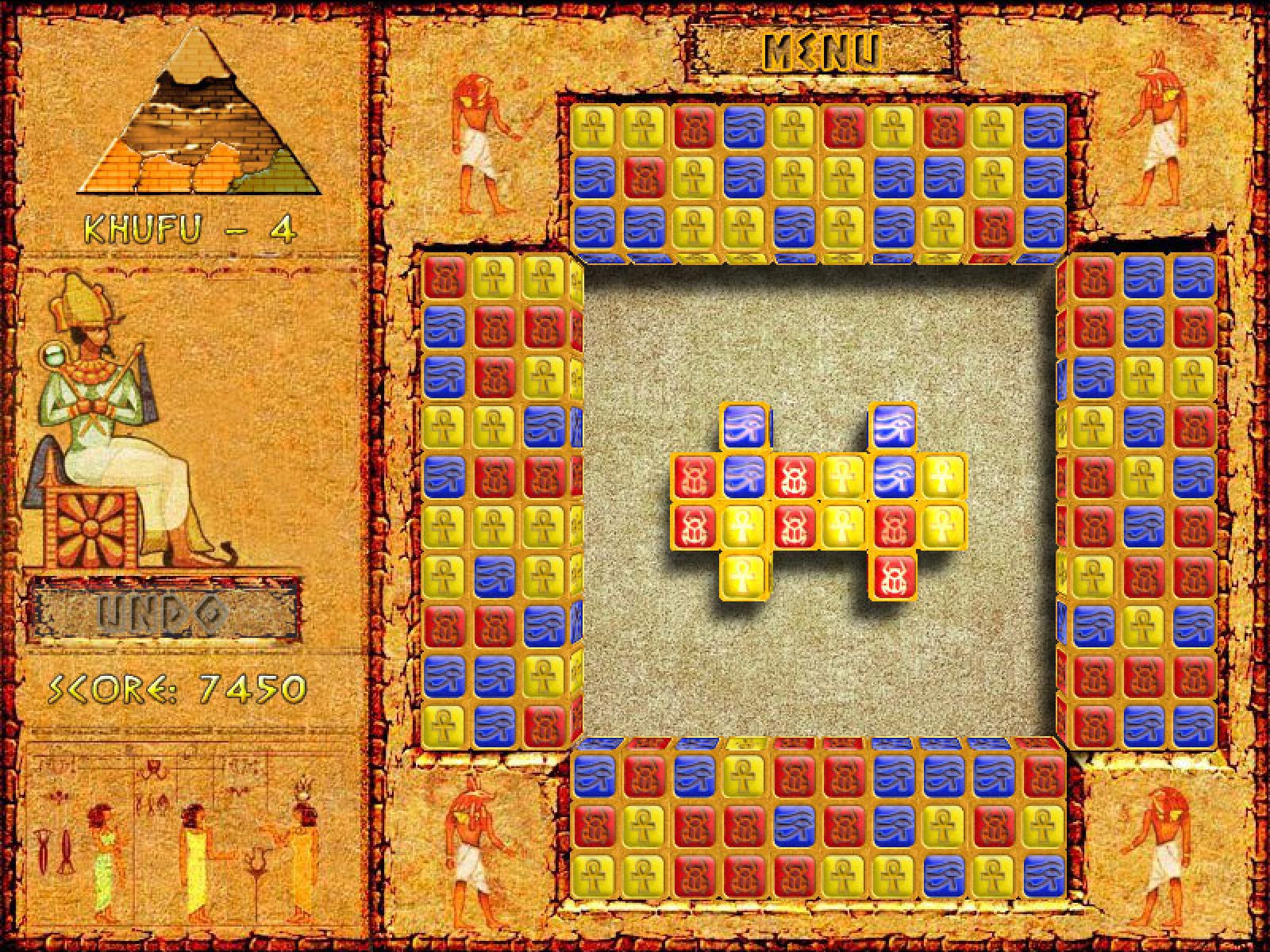 Окунувшись в атмосферу игры Загадки Египта, вы ощутите свою причастность к тайнам великих фараонов - ведь передвигая и составляя вместе кубики с иероглифами, вы восстанавливаете древние египетские пирамиды! Игра содержит 60 оригинальных уровней, которые вы можете пройти по кругу 2, и даже 3 раза - при этом игра будет усложняться, даря новый игровой опыт и радость побед. Решитесь на это путешествие - и уникальный геймплей в сочетании с египетской музыкой не даст вам заскучать!