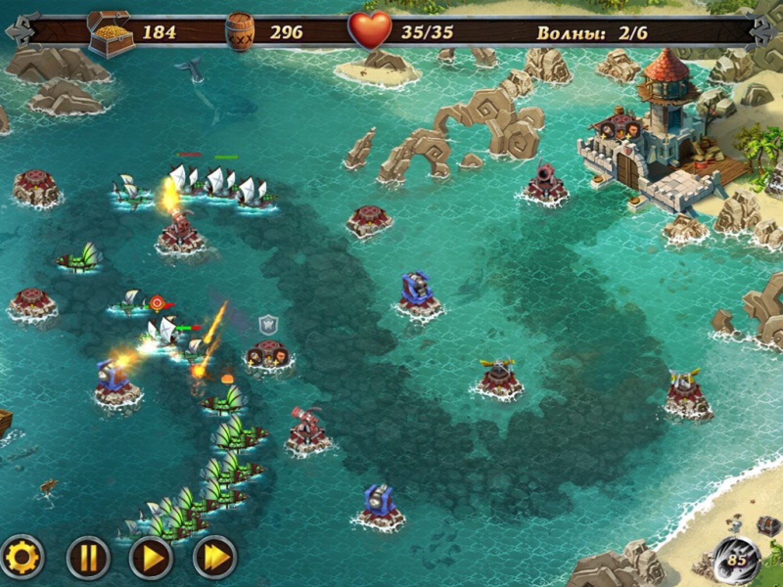 Готовьтесь к бою, пираты уже близко! Нас ждет захватывающее морское приключение. Выработай свою тактику и защити морской форт. Вы такого еще не видели — Tower Defense на море! 40 уровней различной сложности 2 оригинальные локации 12 видов существ 12 видов сооружений игровой магазин морская тематика