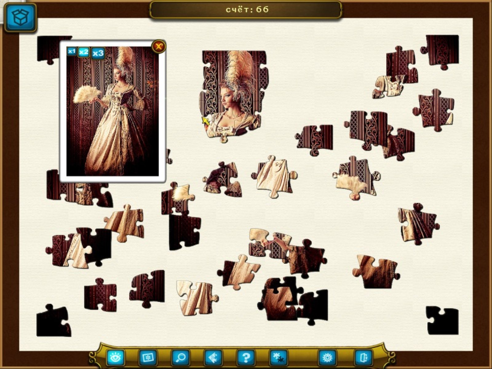 «Королевский пазл» - новая игра в данном жанре: простая, яркая и увлекательная. Вам предстоит самим определить уровень сложности и количество элементов паззла. Различные опции: линза, карман для ненужных элементов, вращение — делают игру доступной для любого возраста. Хотите отдохнуть и поразмыслить без напряжения, играйте вместе с нами!