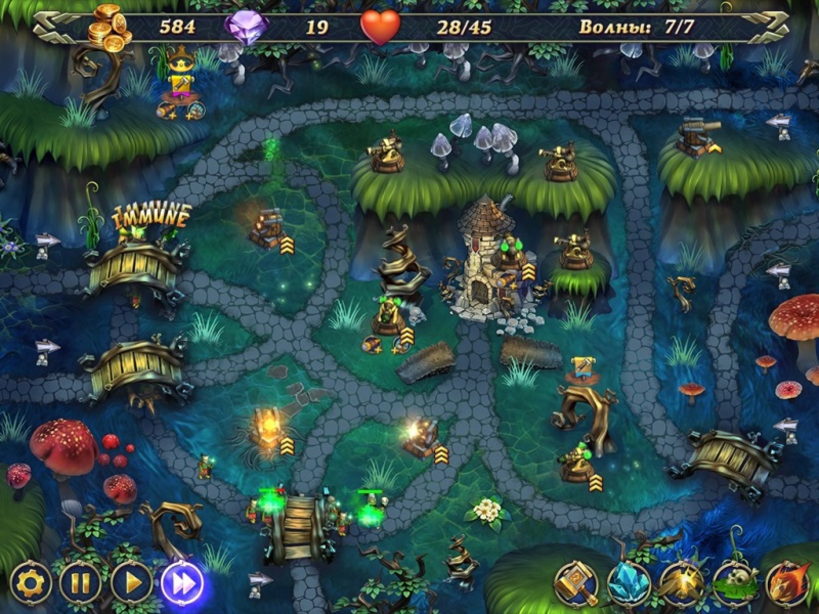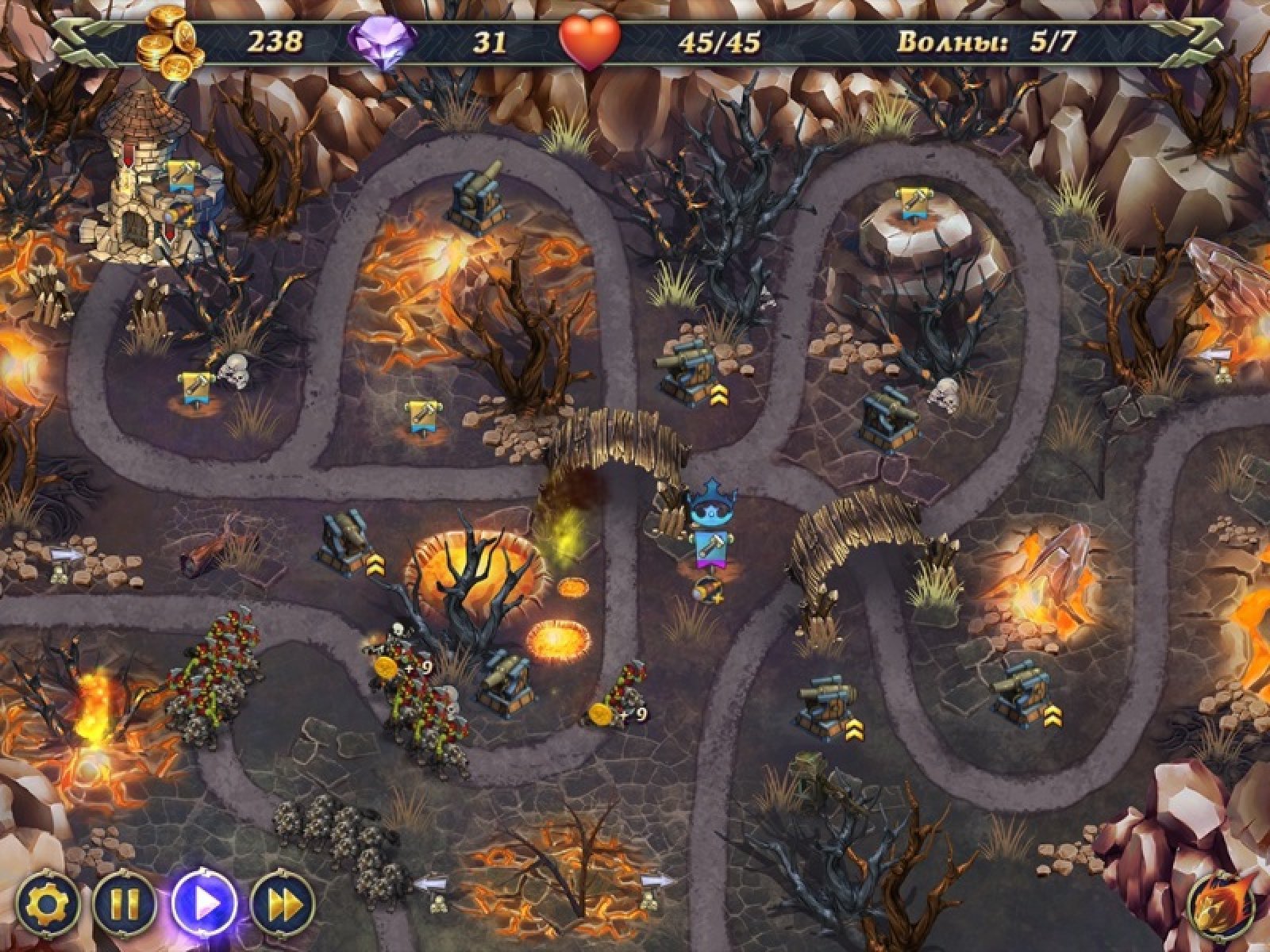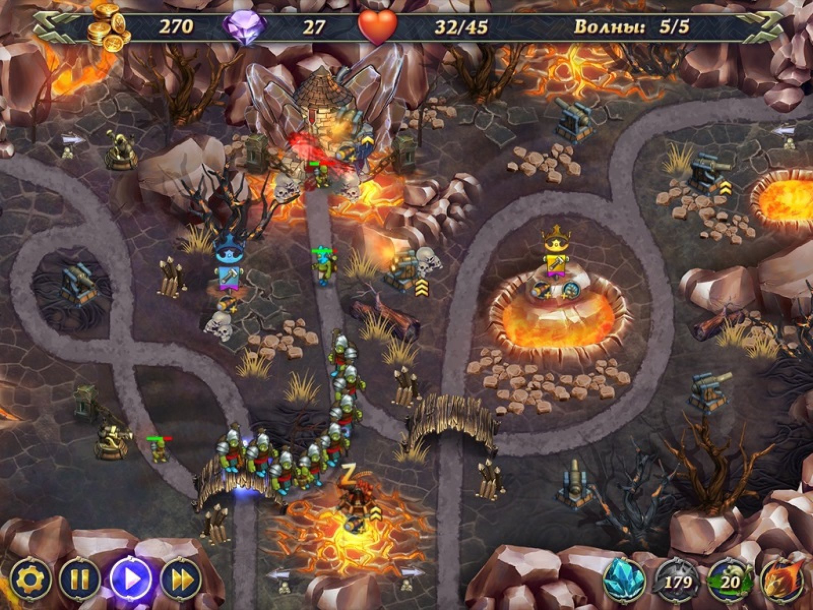 В новой игре «Королевская защита: Древнее зло» вам предстоит победить всех захватчиков, отбив множественные атаки троллей, а так же вернуть спокойную и размеренную жизнь королевству гномов. Увлекательный геймплей и множество новых уровней и юнитов порадует всех любителей жанра Tower Defense. Копи деньги, строй защитные сооружения, качай заклинания, отрази все атаки врага!