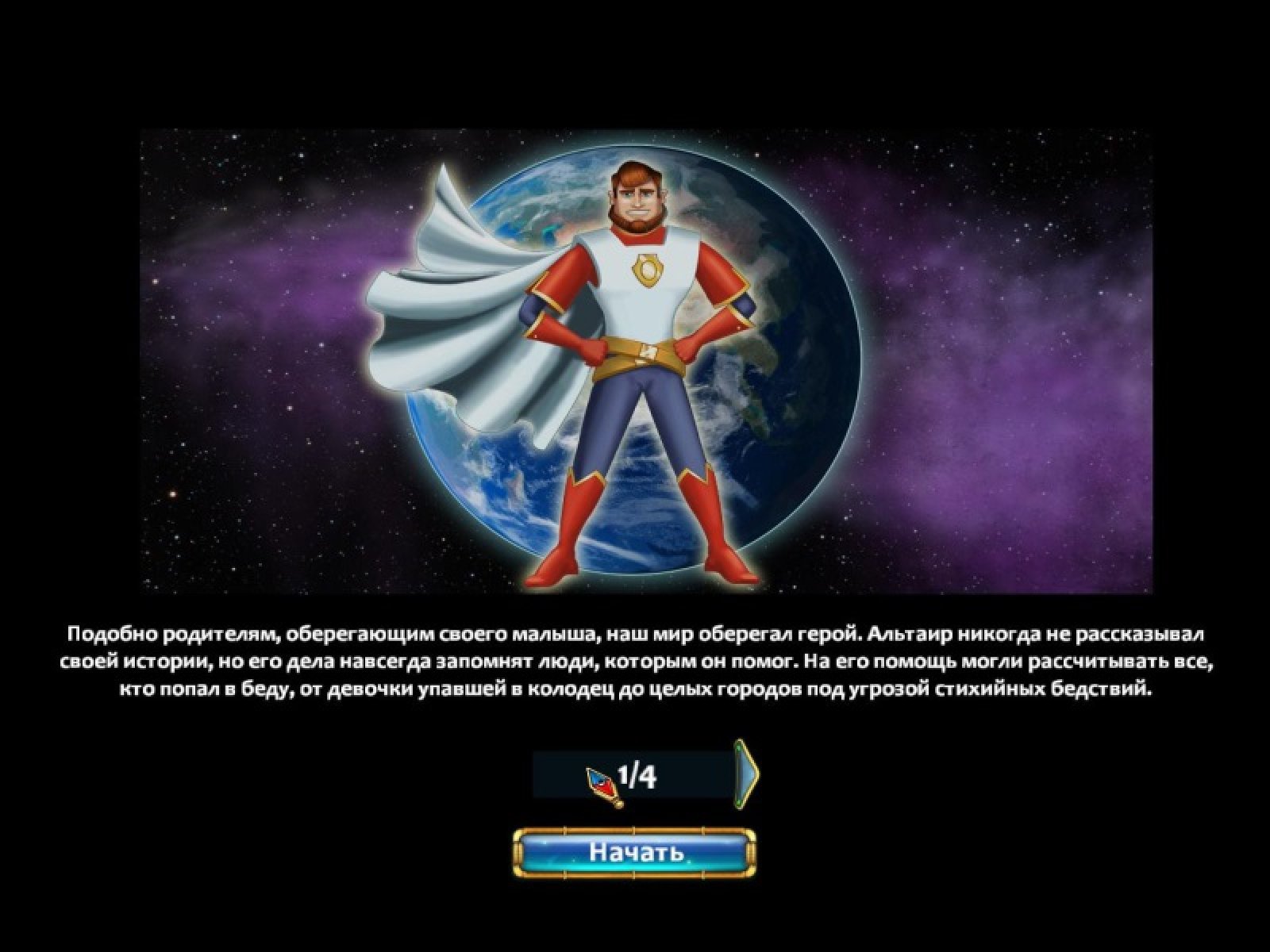 Земле постоянно угрожает множество опасностей и у нее был свой защитник — супергерой Альтаир. После его исчезновения весь мир забеспокоился, на поиски Альтаира было отправлено четыре поисковые группы. Теперь вся надежда только на вас, вам предстоит совершить невероятное и восстановить мир на планете. Ключ к поиску супергероя — небольшой артефакт. Для начала нужно вернуть в строй свою команду спасателей, помочь раненым и позаботиться о лагере для ночлега. Вас ждут увлекательные мини-игры, магазин для покупки техники, незаурядный геймплей и настоящие приключения. Найдите Альтаира и спасите Землю!