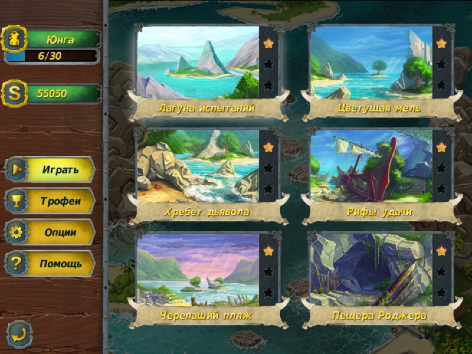 Отправляйся в морское приключение в мире маджонга! Путешествуй по далекому острову и найди пиратский клад в новой игре "Маджонг. Остров сокровищ". 120 захватывающих сбалансированных уровней заставят вас по-новому взглянуть на хорошо известную игру и не дадут скачать даже профессионалам. Специальные золотые костяшки помогут исследовать остров сокровищ и найти клад Джона Сильвера.