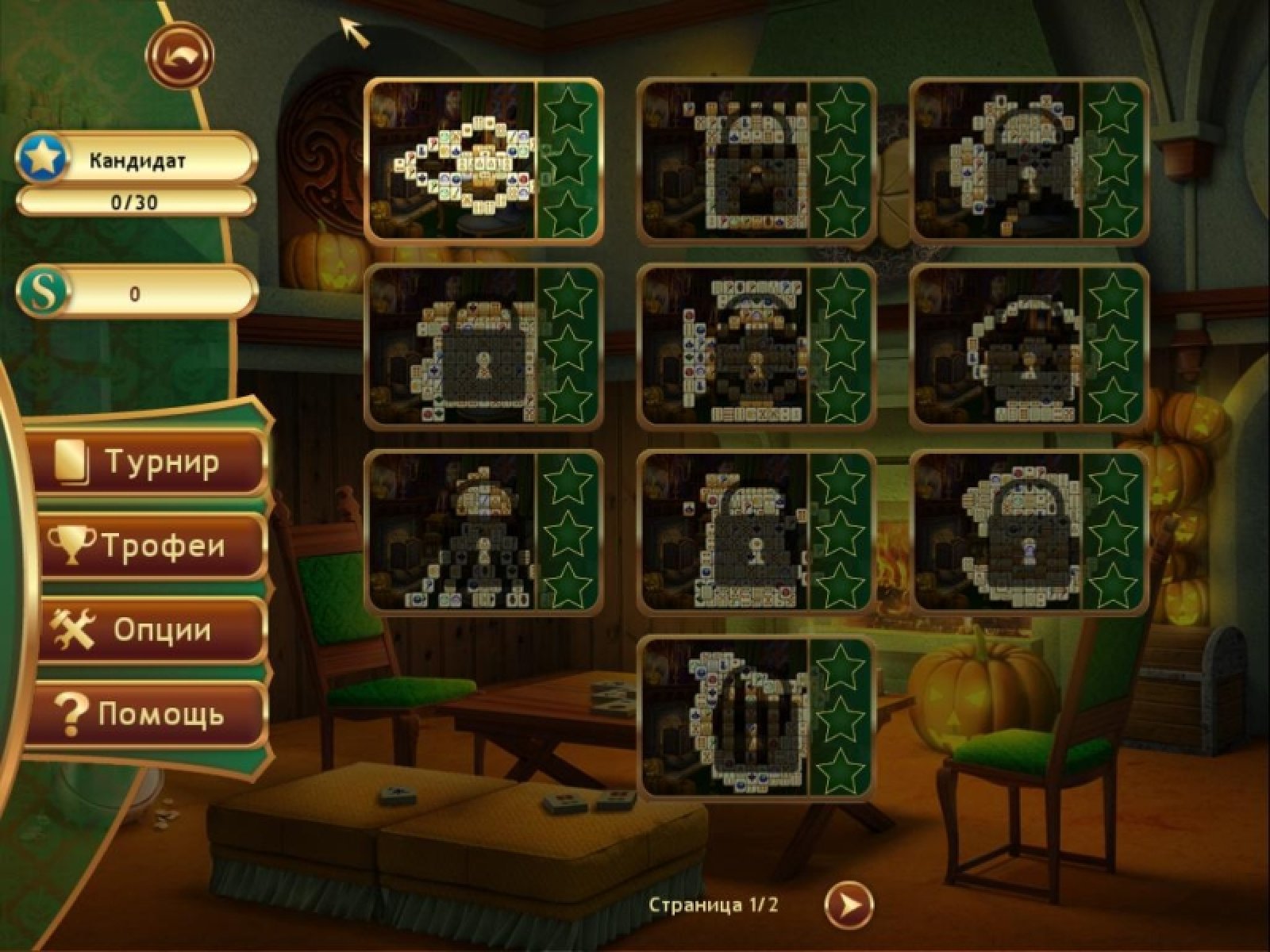 Примите участие в состязании по Призрачному Маджонгу, проходя каждый из 100 уникальных уровней разнообразной сложности и динамики. Продвигайтесь в своём ранге и зарабатывайте репутацию для продолжения борьбы за первое место. Турнир включает в себя несколько отборочных игр. Для разблокировки следующего раунда нужно сначала достичь определённого мастерства в предыдущих. Удаляйте все золотые фишки с игрового поля и приближайтесь к решающему финалу. Чтобы отметить свои достижения вы получаете ценные трофеи. Попробуйте собрать все 26 с полной версией игры Призрачный Маджонг!