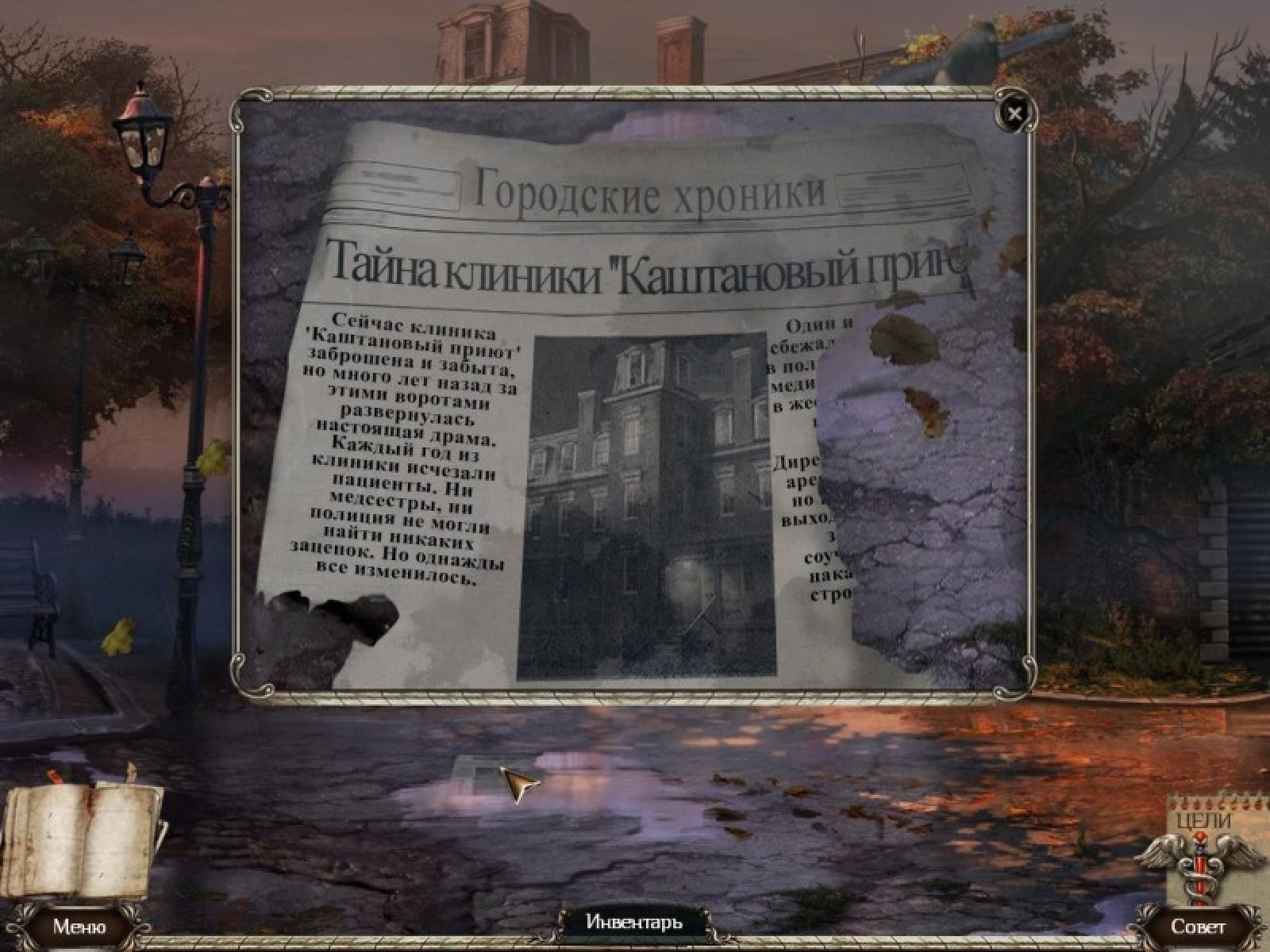 «Каштановый Приют» - это всеми забытая и давно заброшенная клиника. Много лет назад здесь начали бесследно пропадать пациенты. Ни медицинский персонал, ни полиция не могли найти никаких следов и улик. Но тайна загадочного исчезновения пациентов должна быть раскрыта. Вам предстоит заняться этим расследованием, побродить по заброшенная клинике и ее окрестностям и попытаться выяснить, как это место может быть связано с тайной ваших ночных кошмаров!